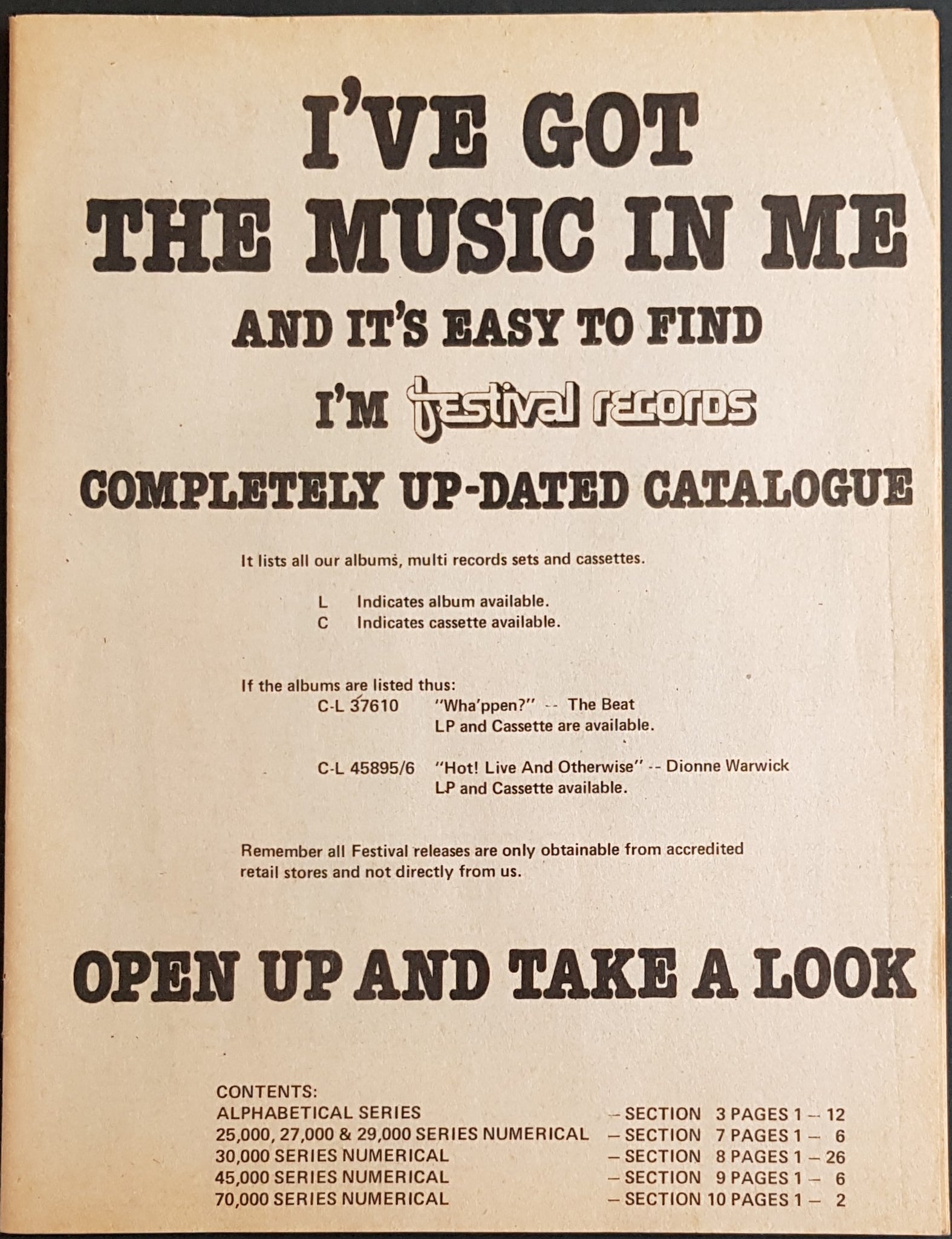 "Festival Records Completely Up-dated Catalogue" As Of 28/8/81