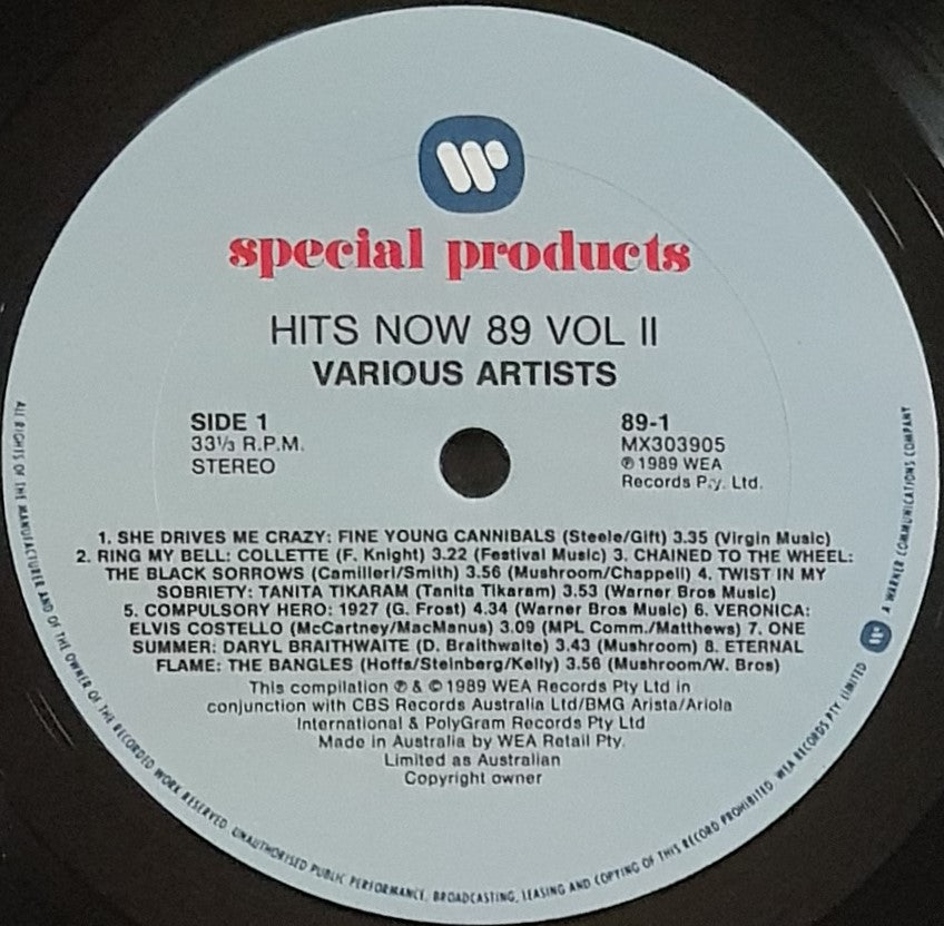 1989 WEA 89-1. Black Sorrows. 1927, Elvis Costello, Bangles, Dragon, Gloria Estefan