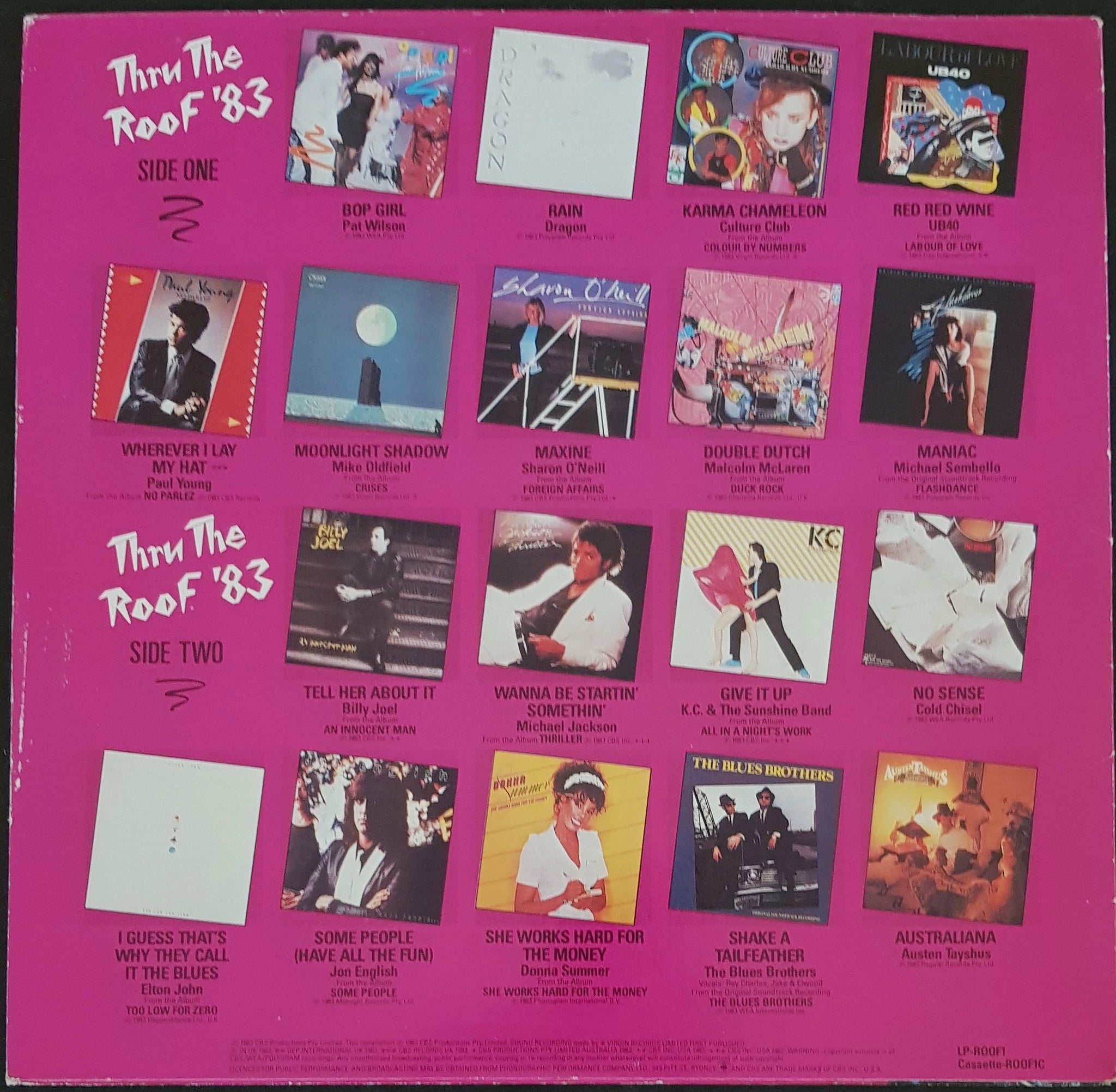 1983 CBS ROOF1. UB40, Culture Club, Dragon, Cold Chisel, Sharon O'Neill, Michael Jackson, Elton John. Cover has minor wear, scuffs, creases along spine and small surface scratch on front. Light hairlines / scuffs on Disc.