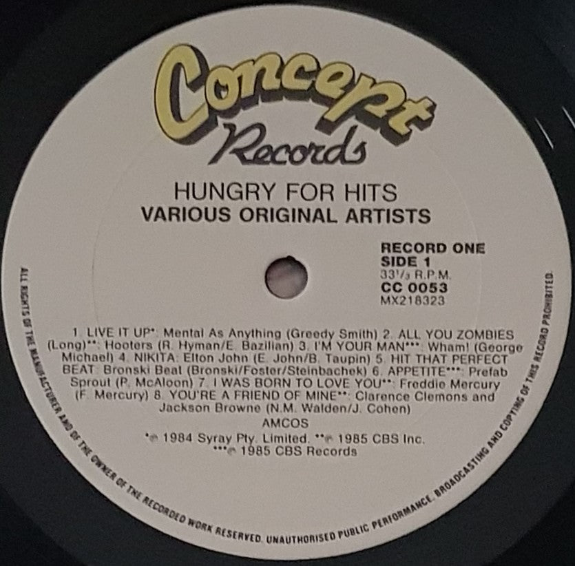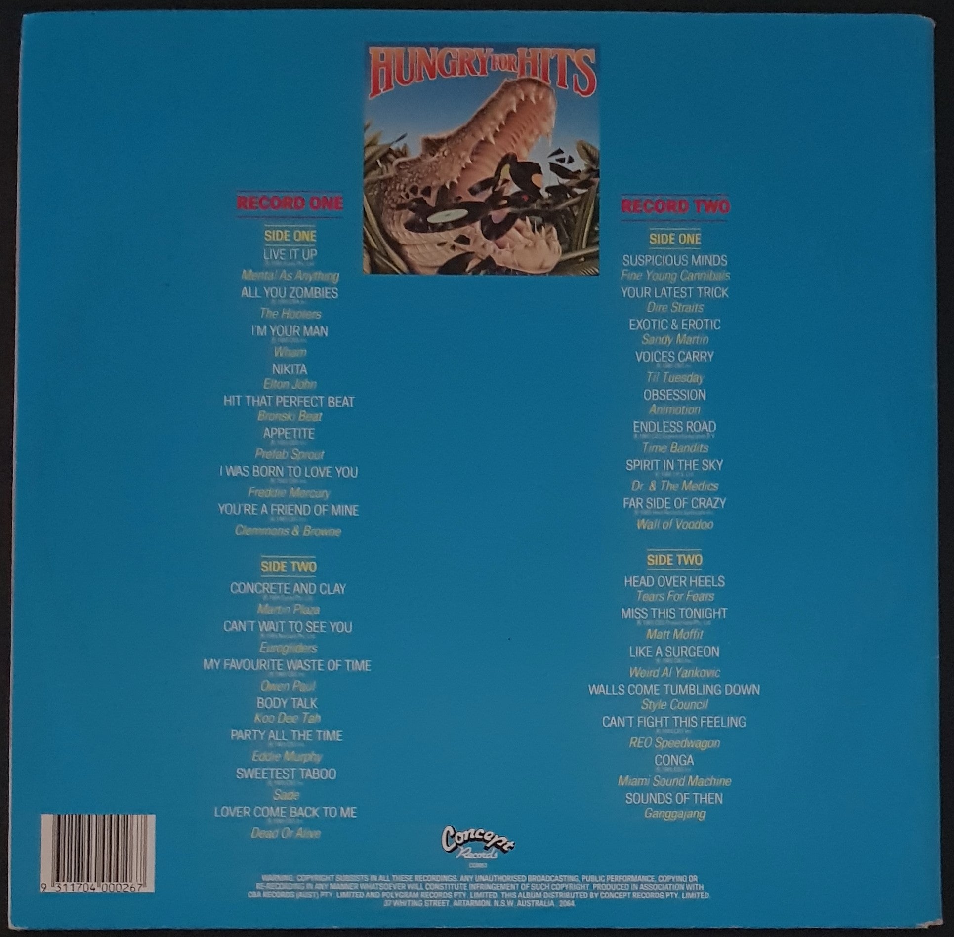 Gatefold Cover. 1987 Concept Records CC0053. Features Mental As Anything, Wham, Dead Or Alive, Freddie Mercury, Style Council+++. Minor wear and Scuffing on Cover. Light Scuffs on Disc 2.