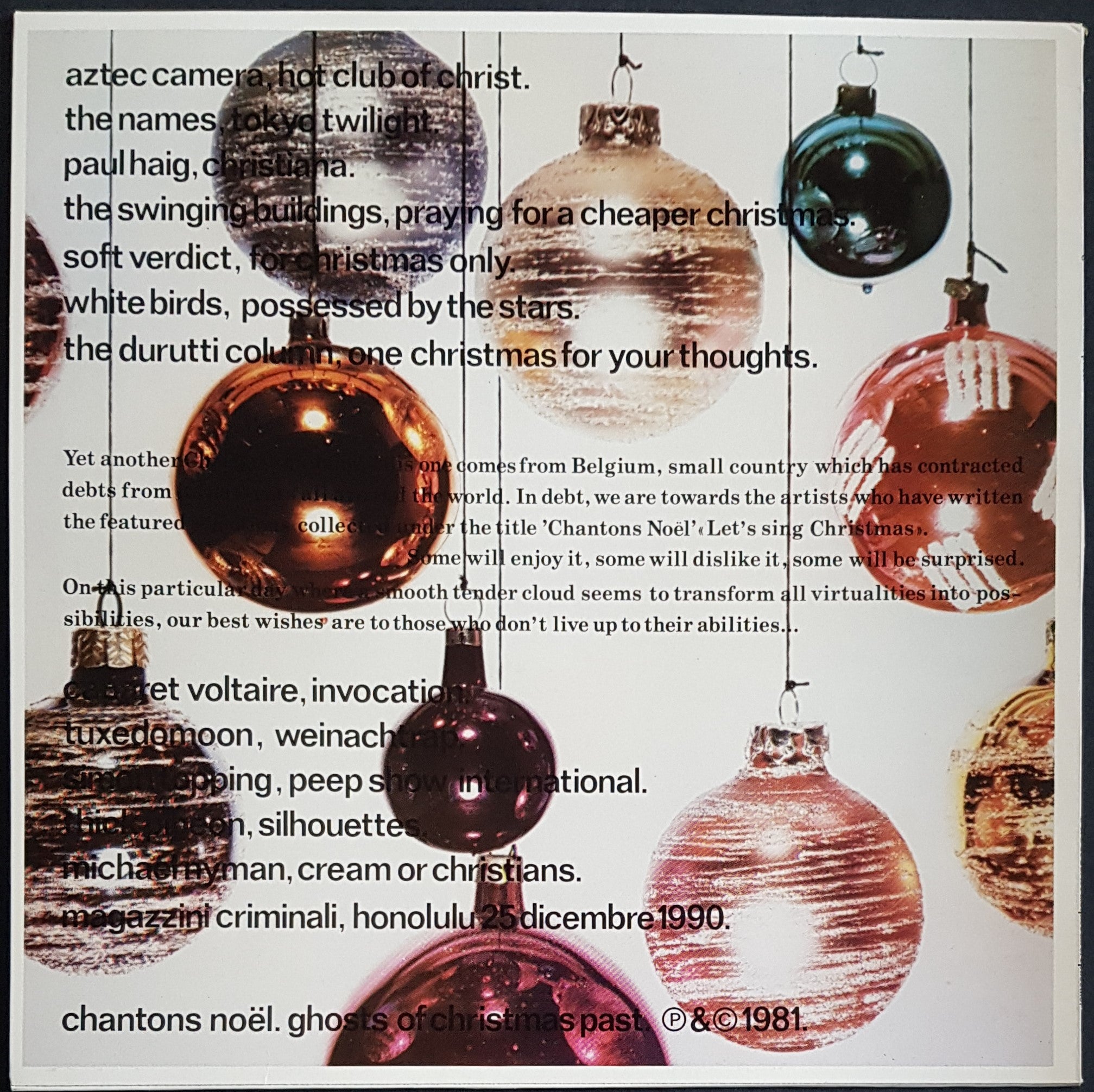 w.Insert. 1981 Les Disques Du Crépuscule TWI 058. Aztec Camera, Durutti Column, Cabaret Voltaire, Tuxedomoon +++