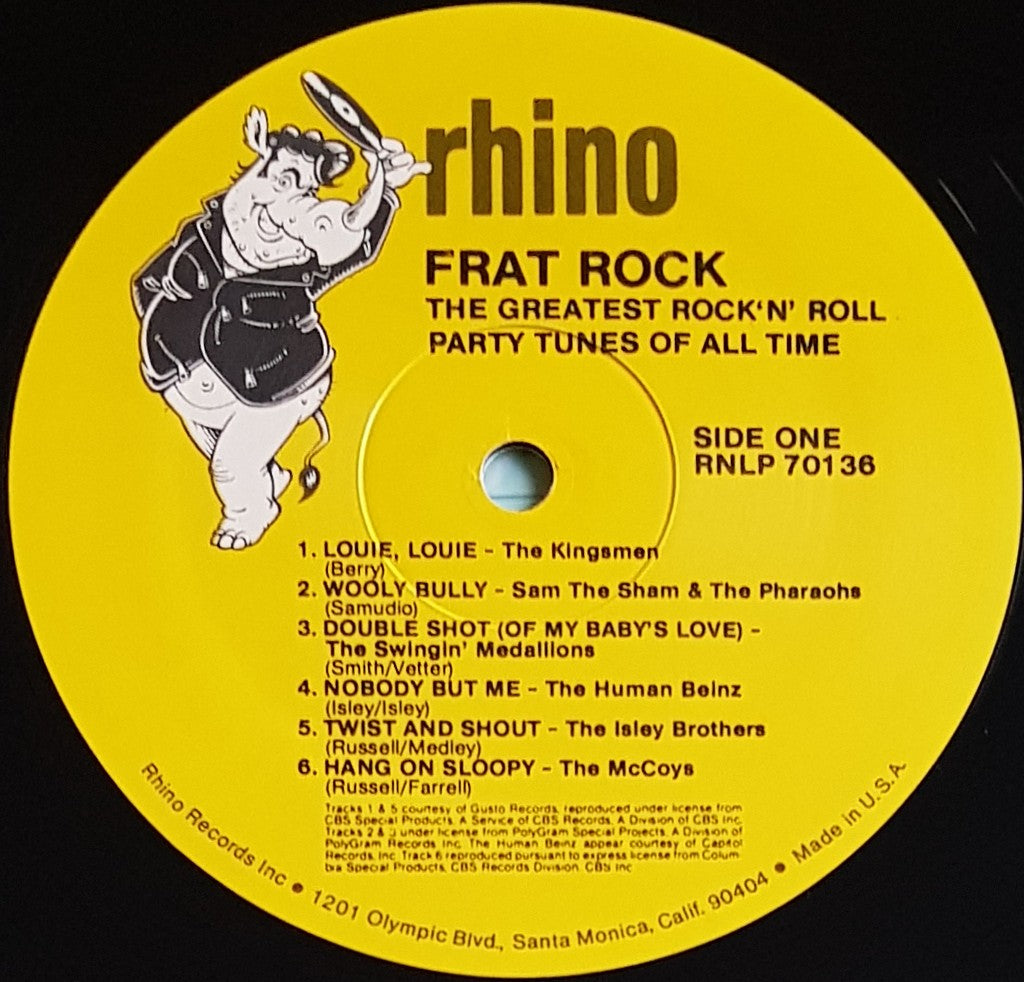 The Greatest Rock 'N' Roll Party Tunes Of All Time. 1987 Rhino Records RNLP 70136. Kingsmen, Sam The Sham, Human Beinz, Troggs, McCoys, Surfaris, Strangeloves ++++