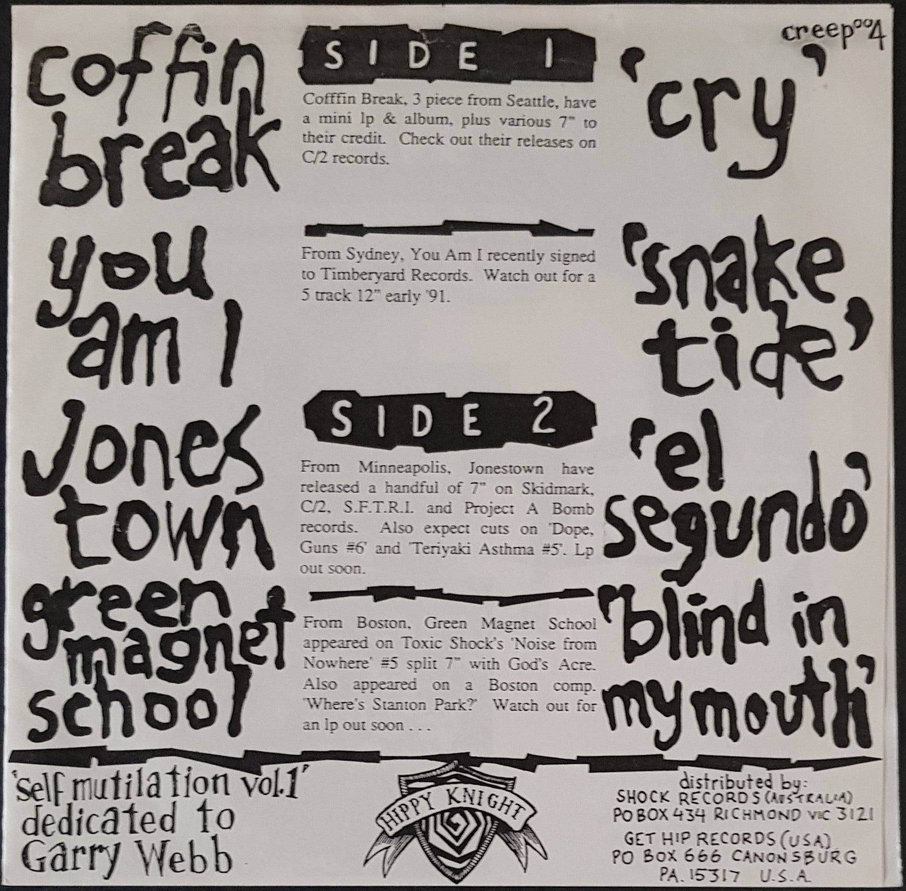 EP PS. 1991 Hippy Knight Records creep004. Features You Am I, Coffin Break, Green Magnet School & Jonestown.