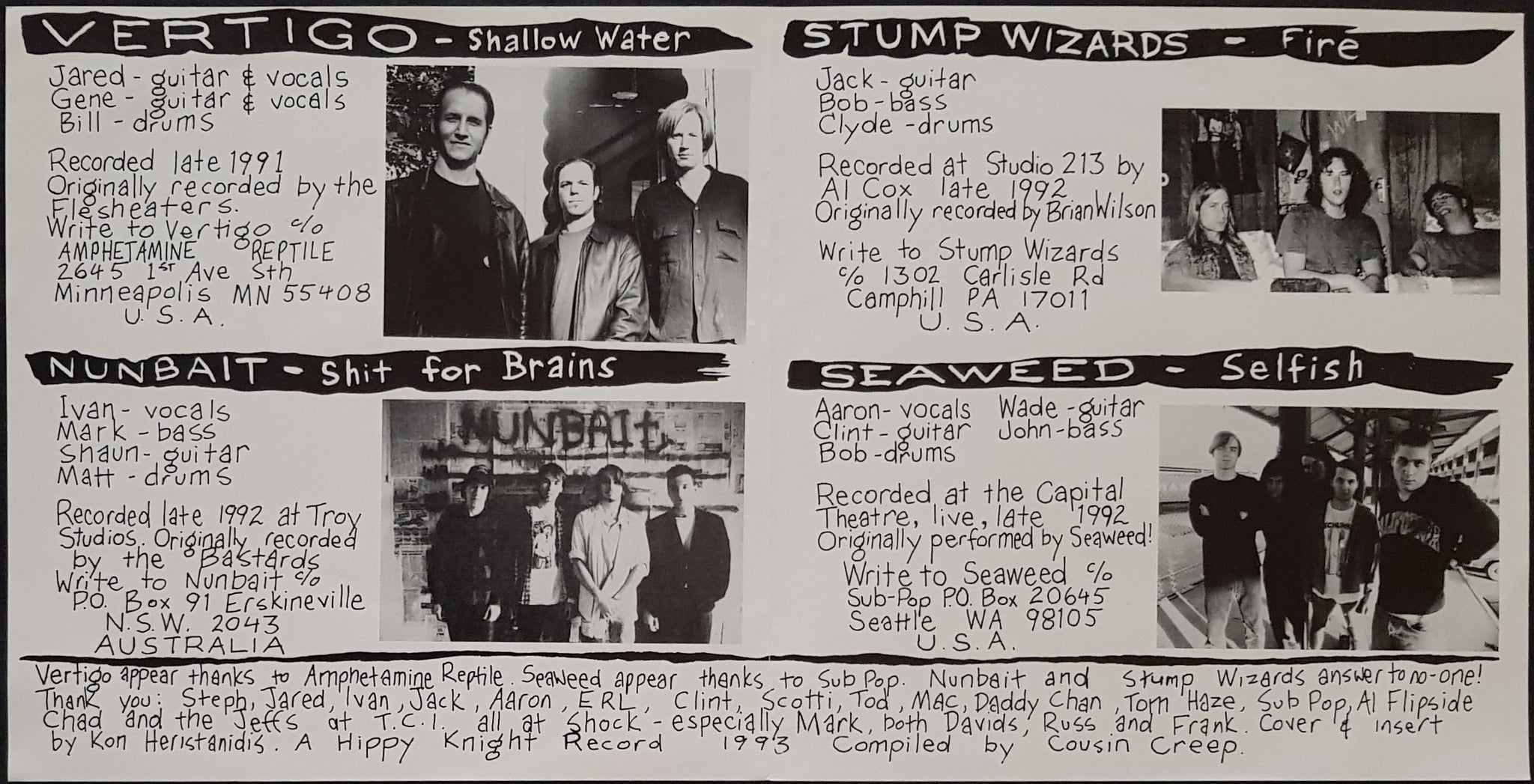 EP PS. 1993 Hippy Knight Records CREEP 012. Features Vertigo, Nunbait, Seaweed & Stump Wizards