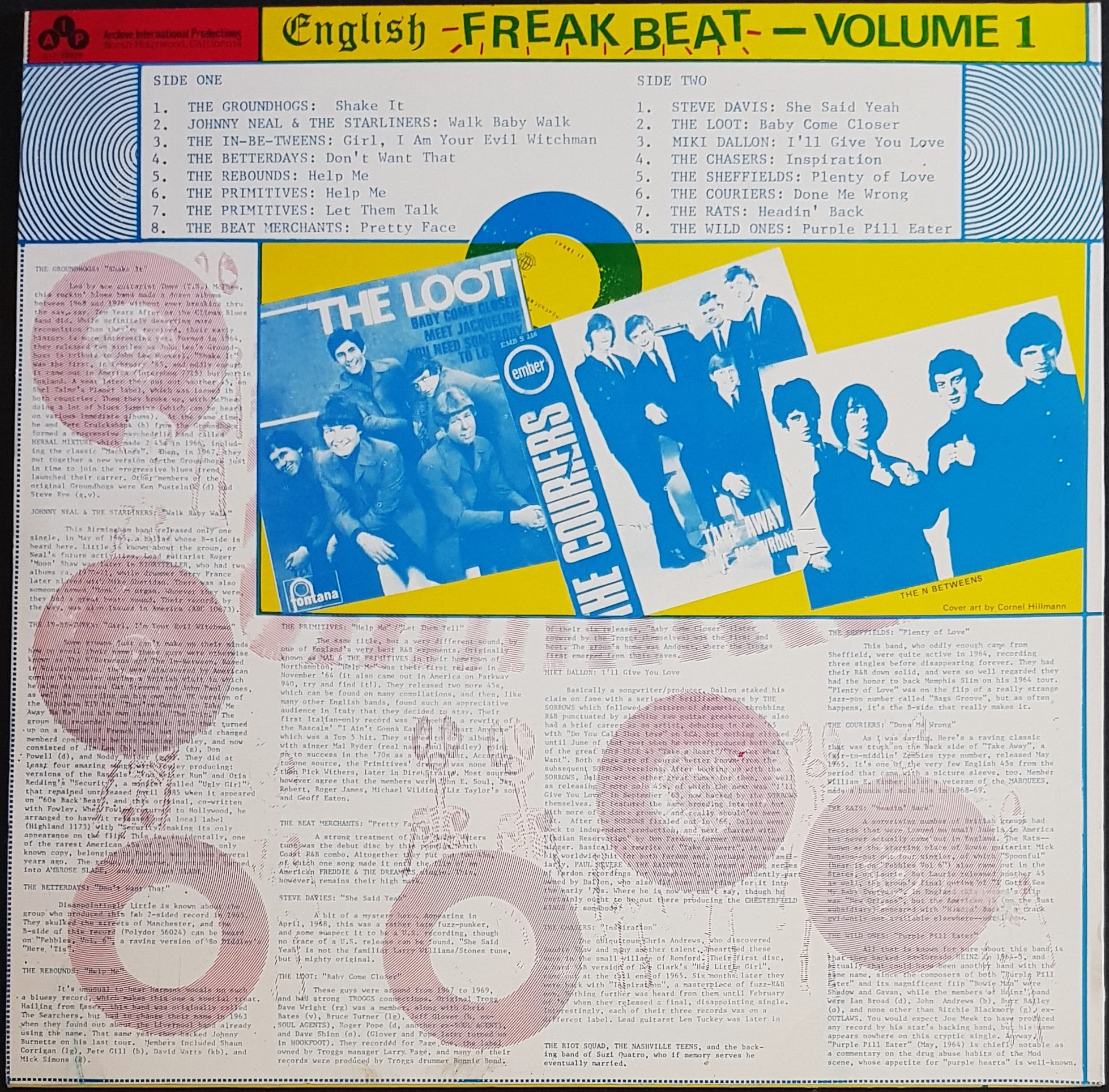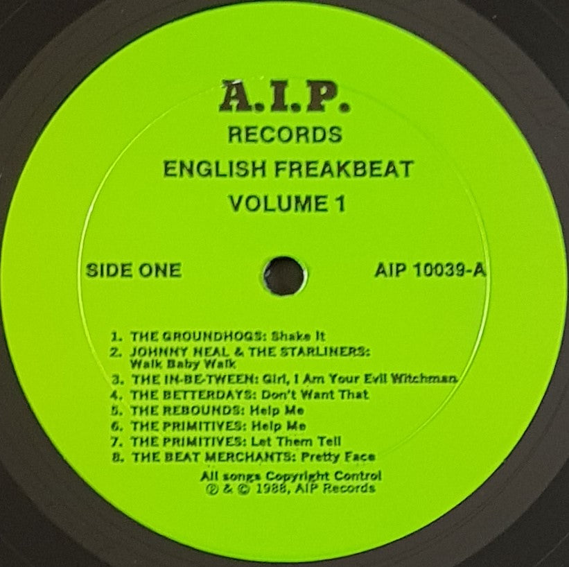 Compilation. 1988 A.I.P.Records AIP10039. Tracks by Groundhogs, Johnny Neal & Starliners, Miki Dallon, The Primitives, The Loot +++.Cover has minor creases. Small mark through back end of "The Couriers-Done Me Wrong" & Start of "The Rats-Headin' Back" Not that bad.