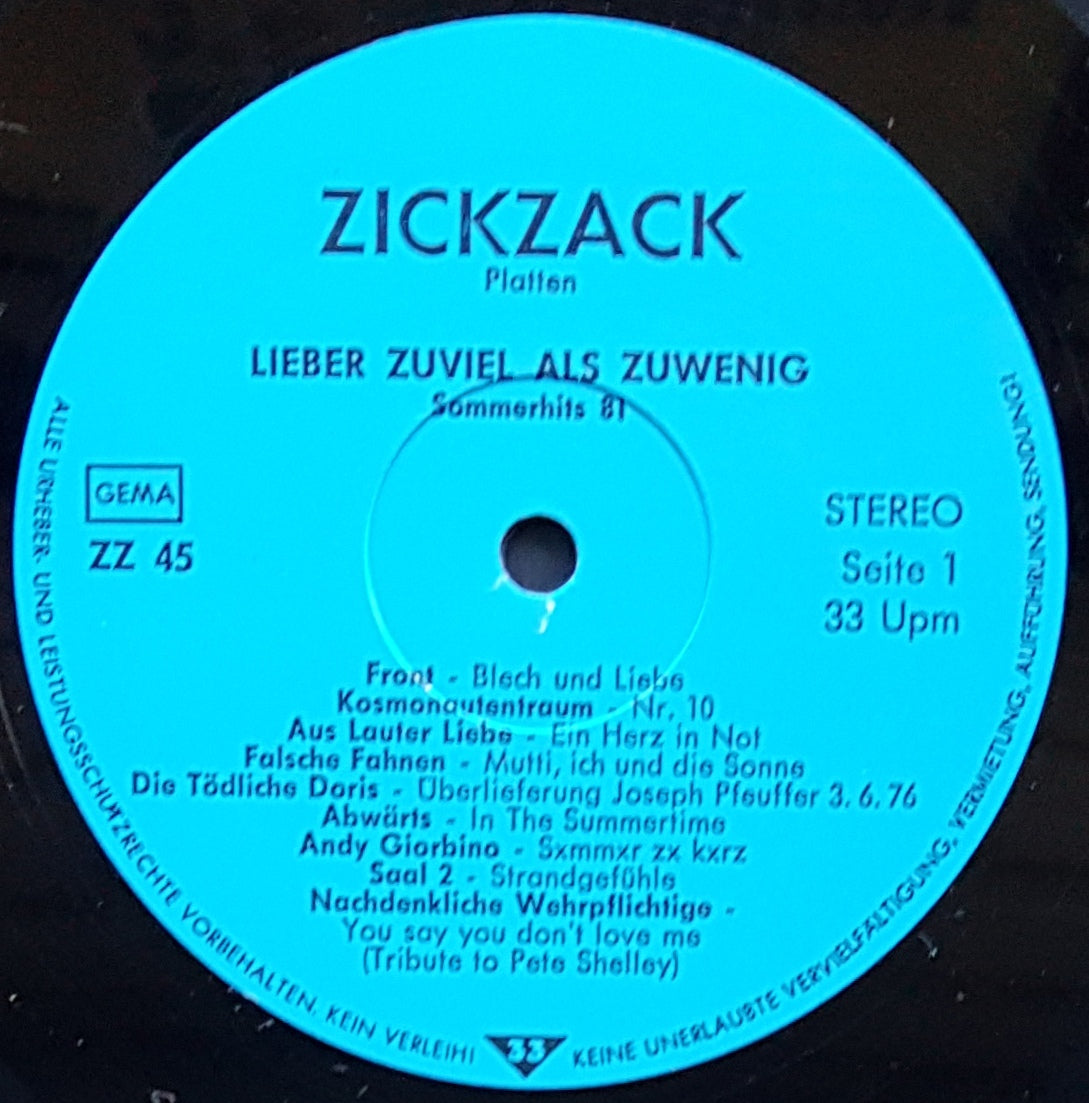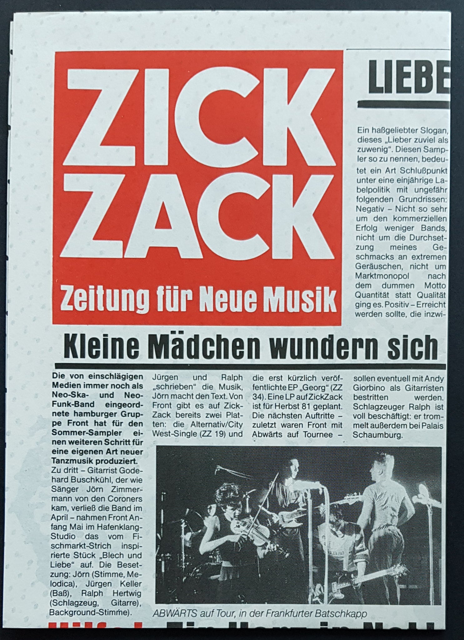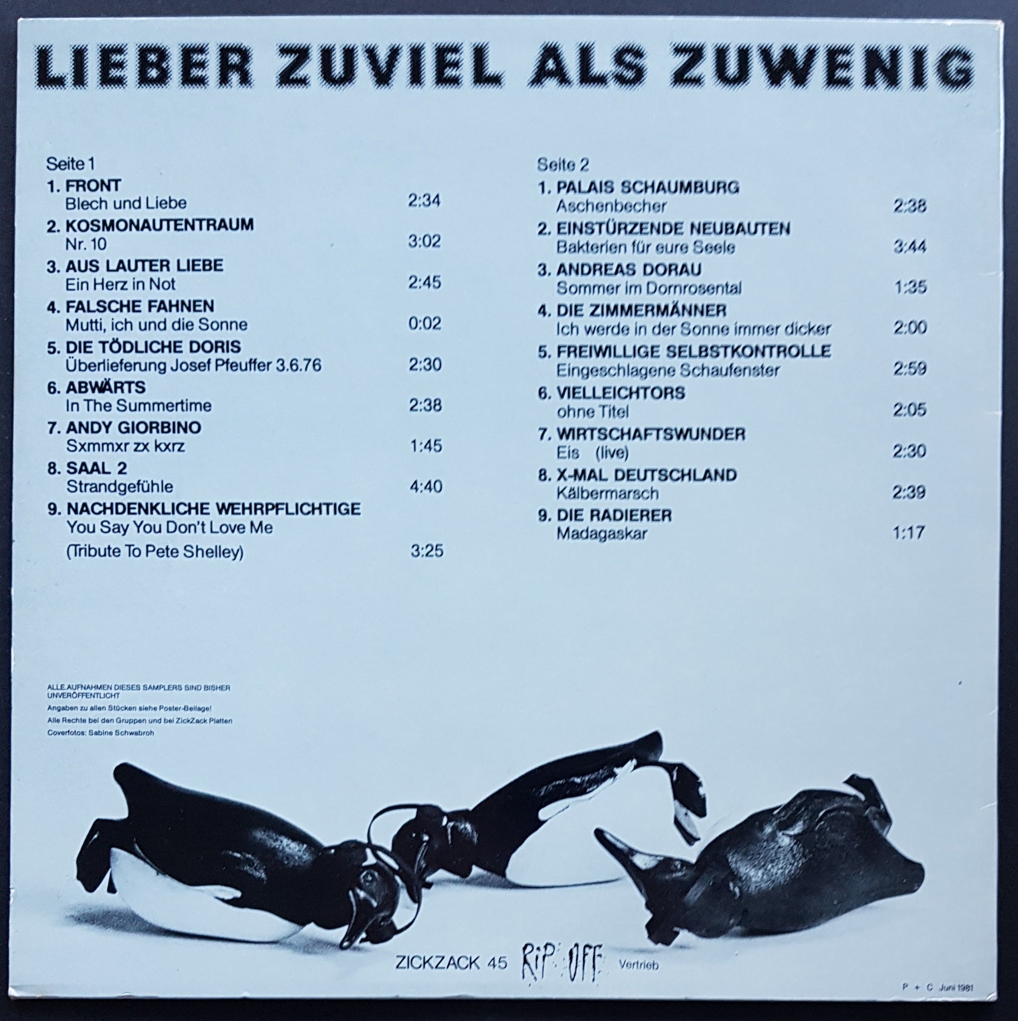 w.Insert. 1981 Zickzack ZZ45. 18 Track Compilation Features X-Mal Deutschland, Einsturzende Neubauten, Front & Others.