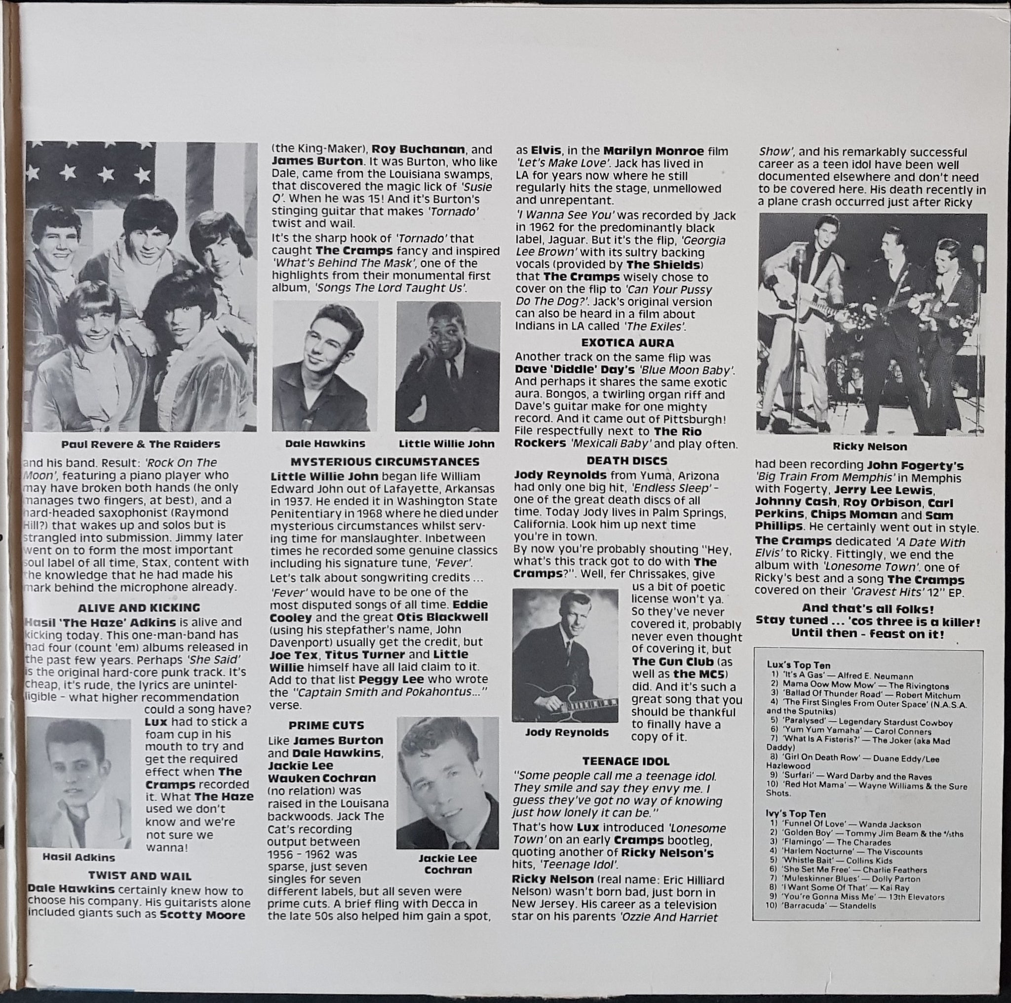 Gatefold Cover. 1986 Born Bad Records BB002. Consisting Of Tracks Recorded By Original Artists & Subsequently Covered By The Cramps. Cover has minor handling crease on front and along spine, surface wear and 2 seam splits