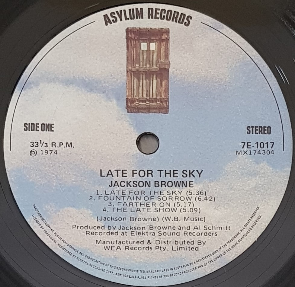 1974 Asylum 7E 1017. Cover has light creases along spine, some of which have cracked the printing. Larger creases along bottom seam.