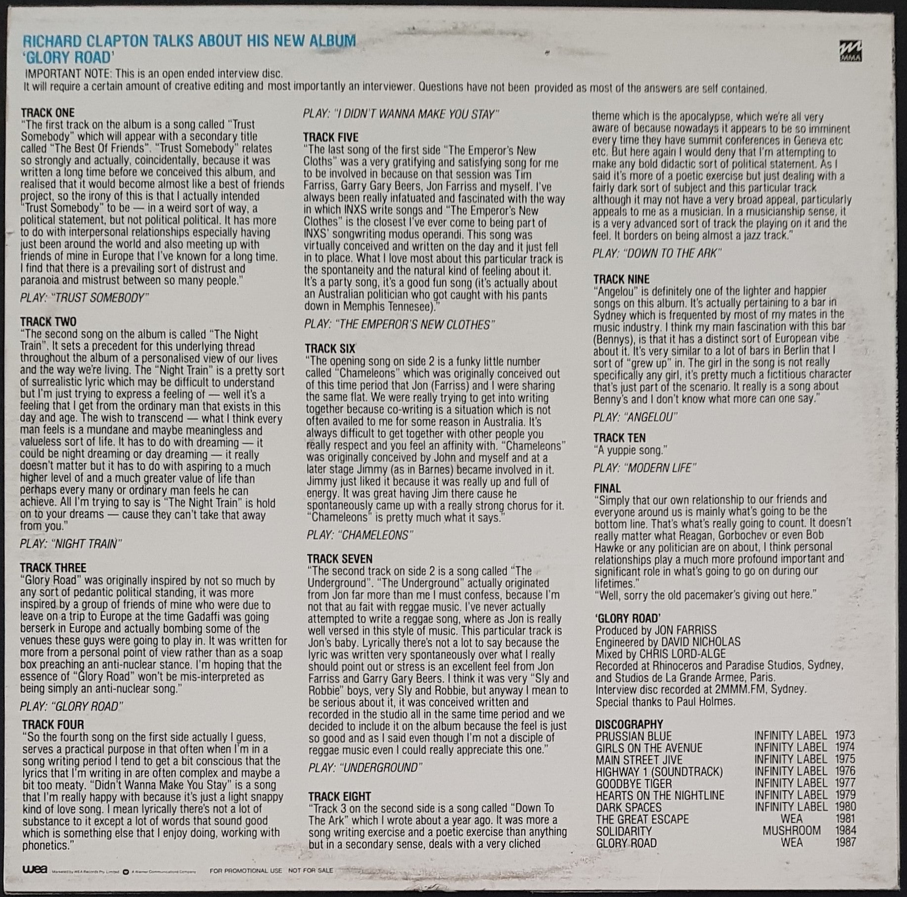 Promo Only w.Printed Cover. 1987 WEA Issue. GLORY-1. Minor Ring Wear on Cover.