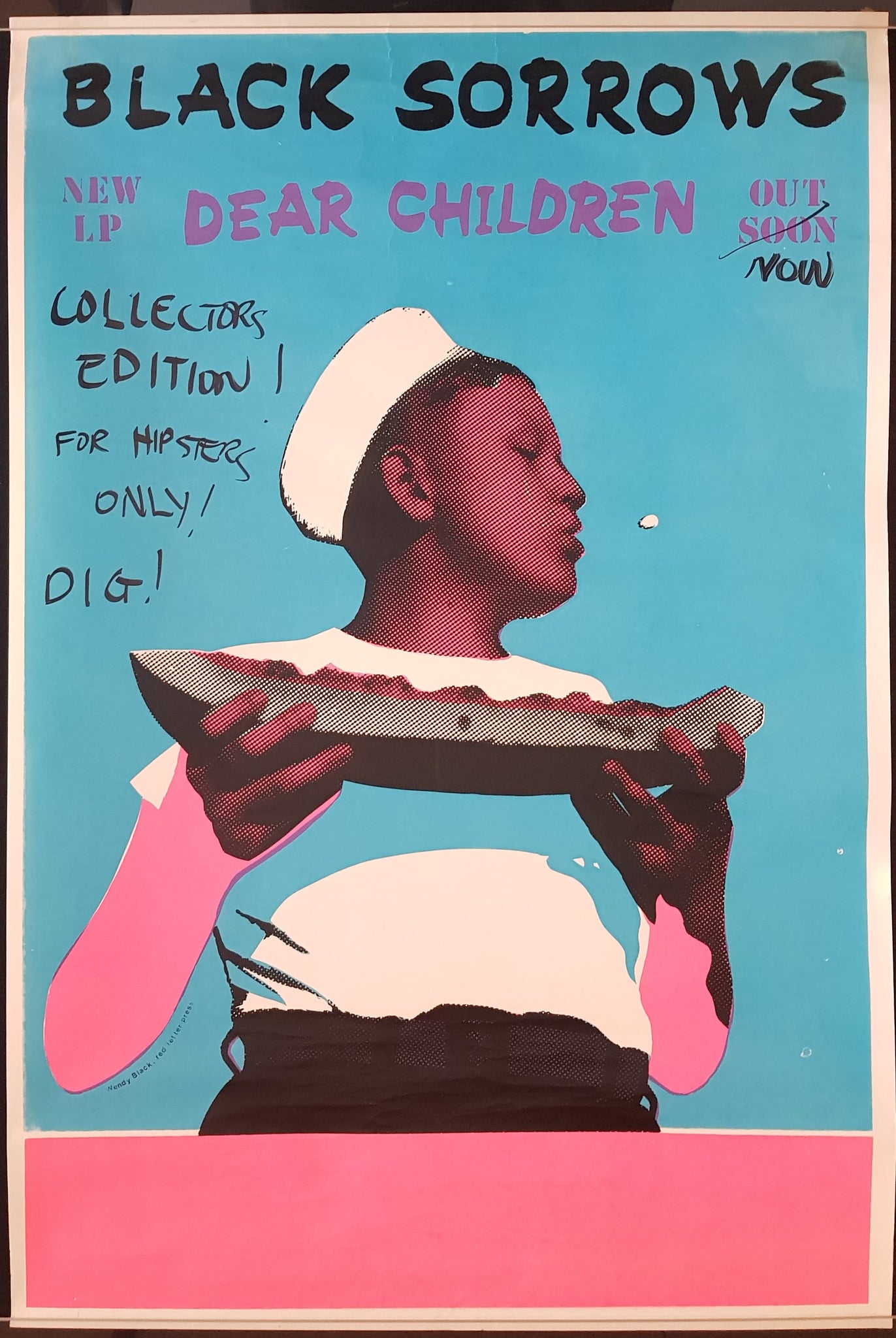 New Release / Gig Poster (unused), 1987. 51cm x 76cm. Beautiful screen print - Wendy Black - Red Letter Press. Minor creasing