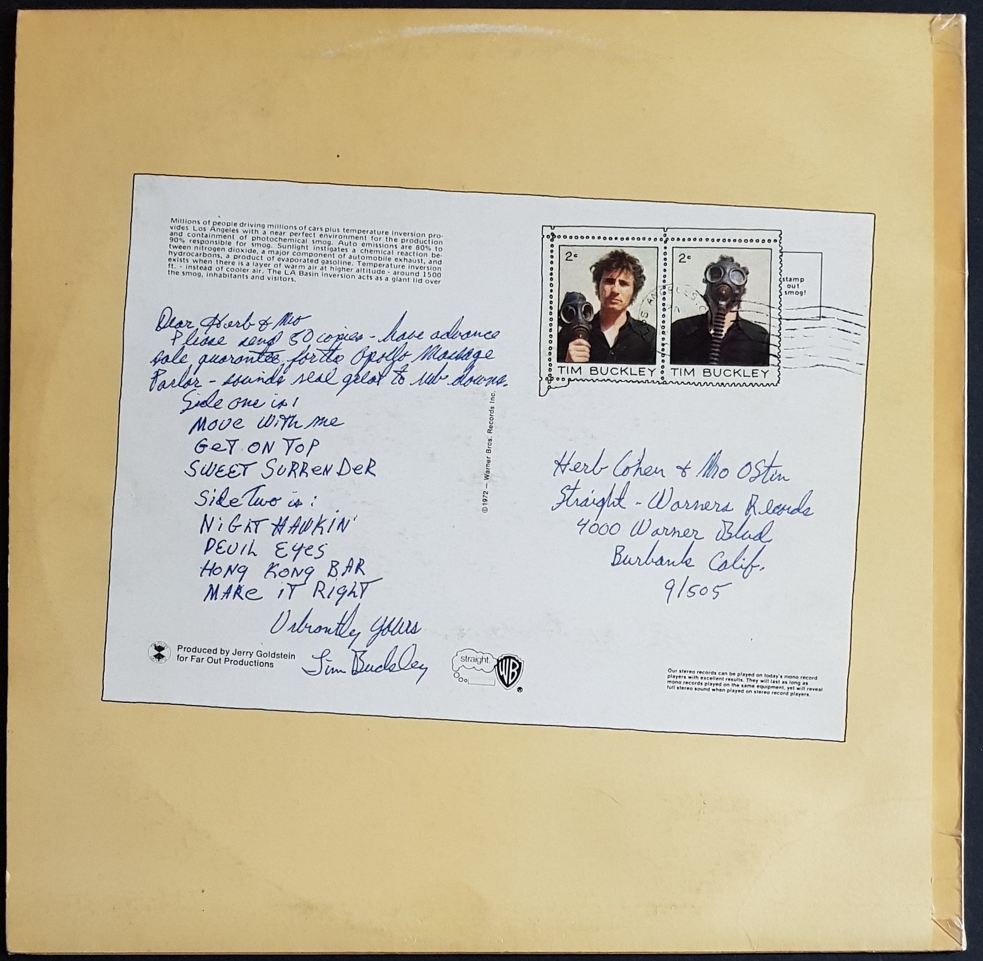 Warner Bros 'Burbank Blvd. Label' BS-2631. Cover has ring and surface wear with small water stain also on rear. Front cover has usual lamination flaws seen in late 70's Aus pressings