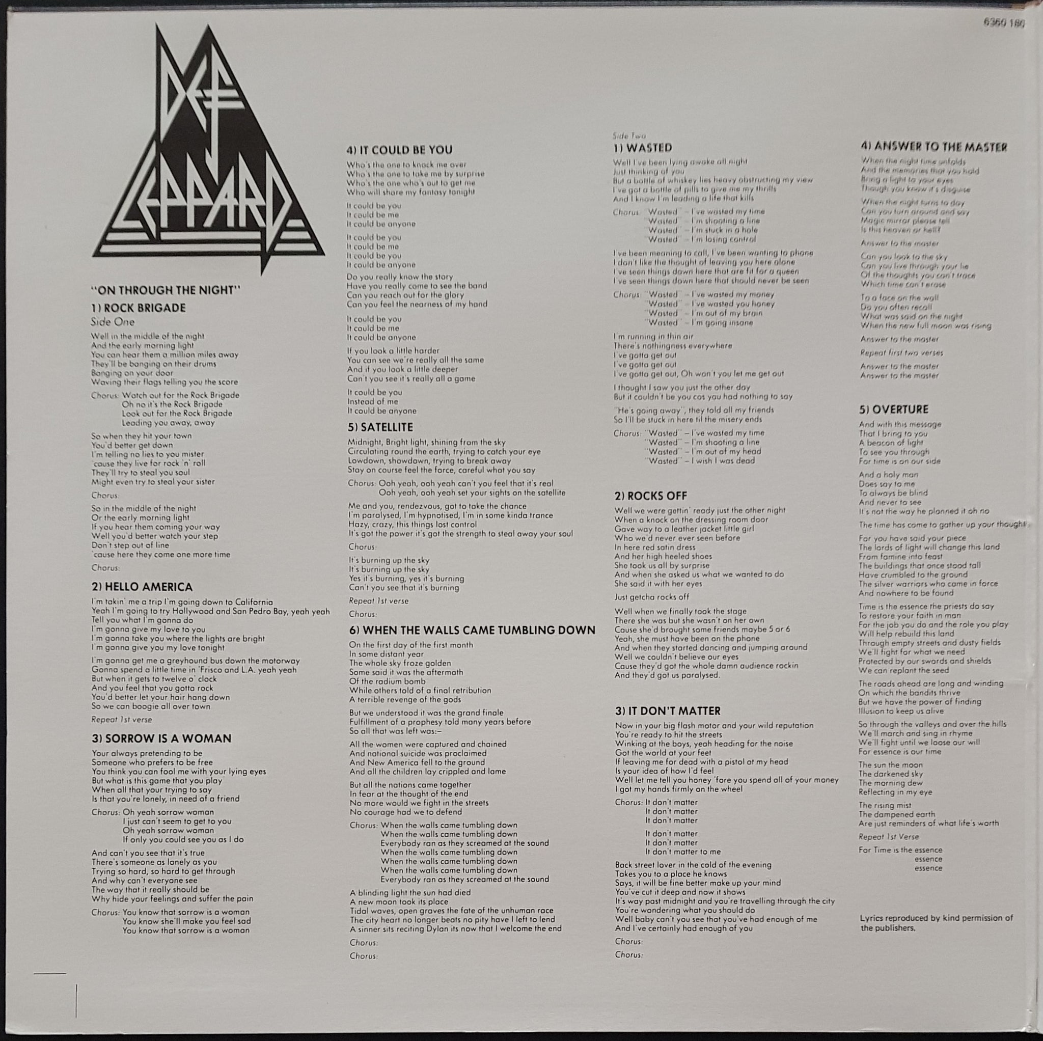 w.Unique Gatefold Cover. Has Lyrics Printed Inside. 1980 Vertigo 6360180. Cover has 2 Small crease marks along spine.