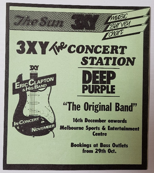 Top 40 Chart. 7" x 7" in size. Front Lists 1984 Melbourne Concert Details