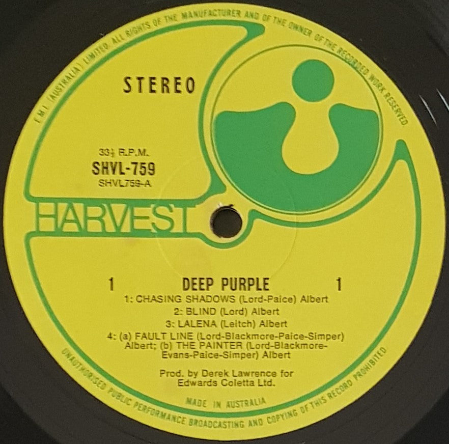 Unique Purple & White Cover. Harvest SHVL-759. Laminated cover has light creases along spine, some have cracked the print. Fine mark on first half of "Chasing Shadows" will make light ticking sound. Foxing on labels
