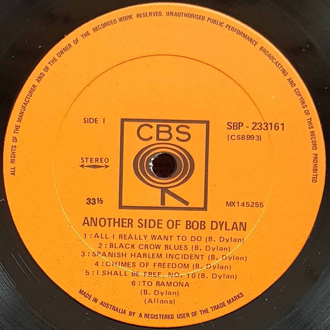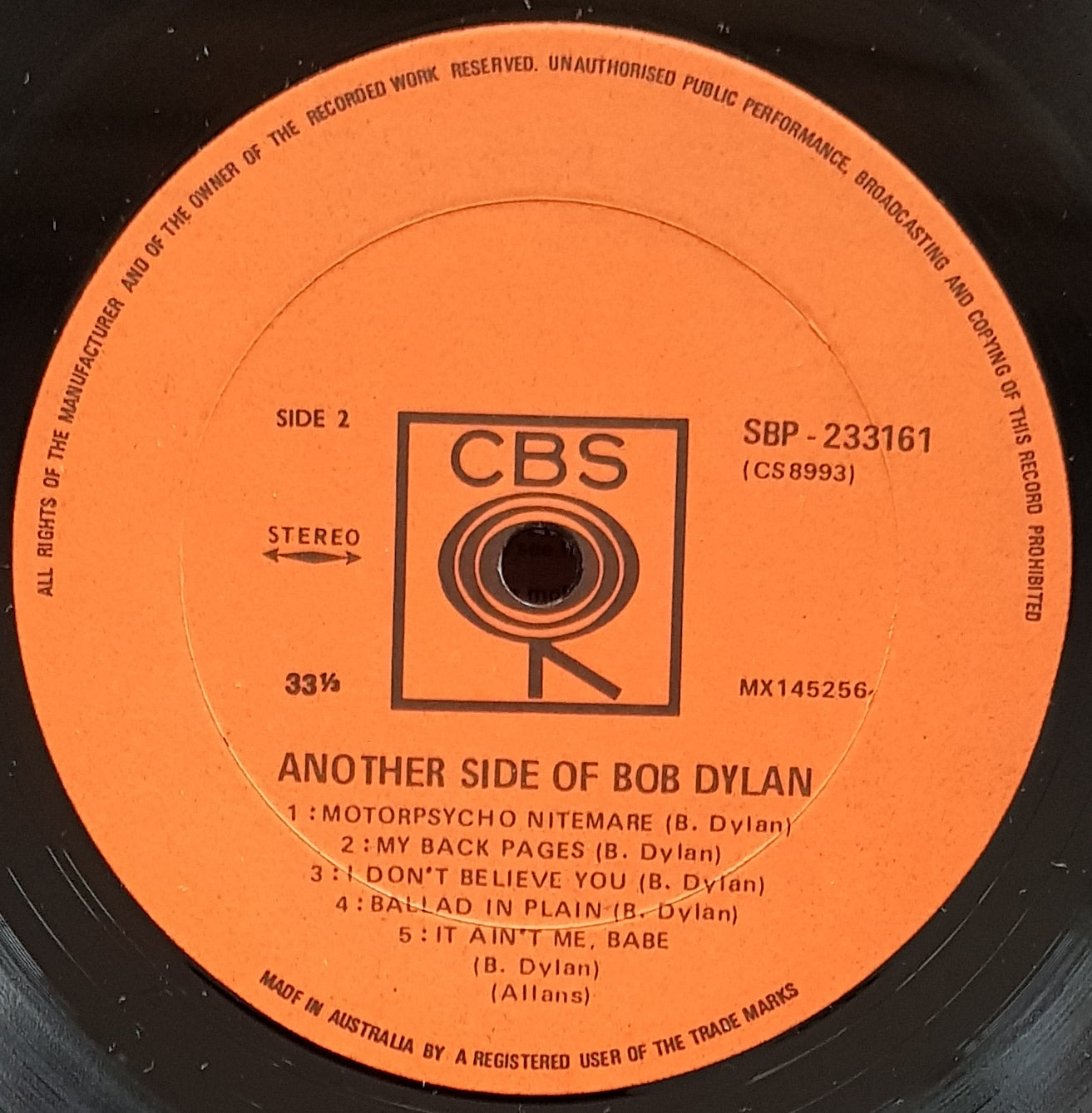 1969 Orange CBS Stereo Label SBP 233161. "360 Sound" Stereo Laminated Cover. CBS Logo is 27.5mm x 28mm & Label has '(Allans)' Printed Underneath Track Listing. Finer font on song titles on labels. Minor wear and foxing on back cover.