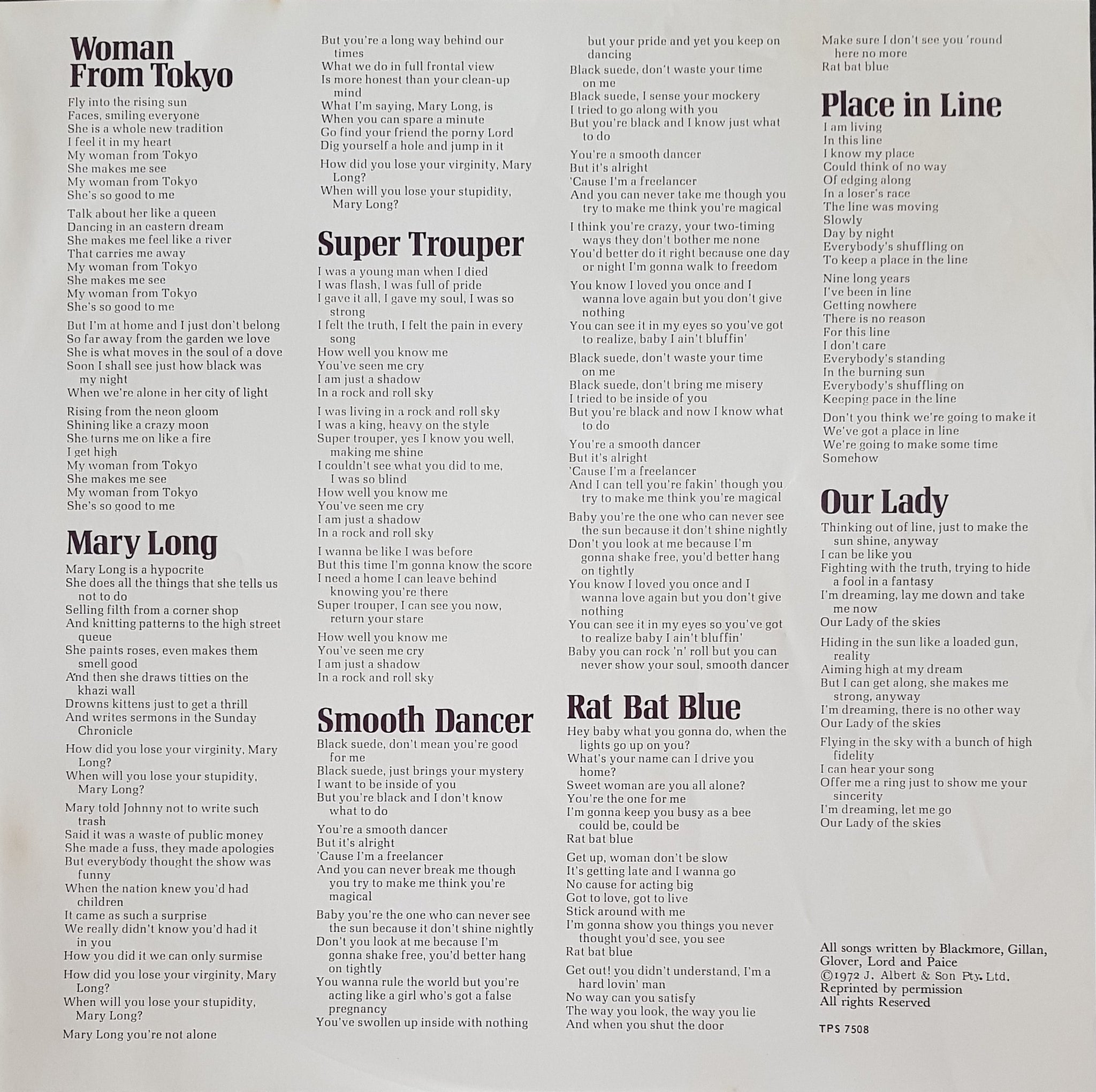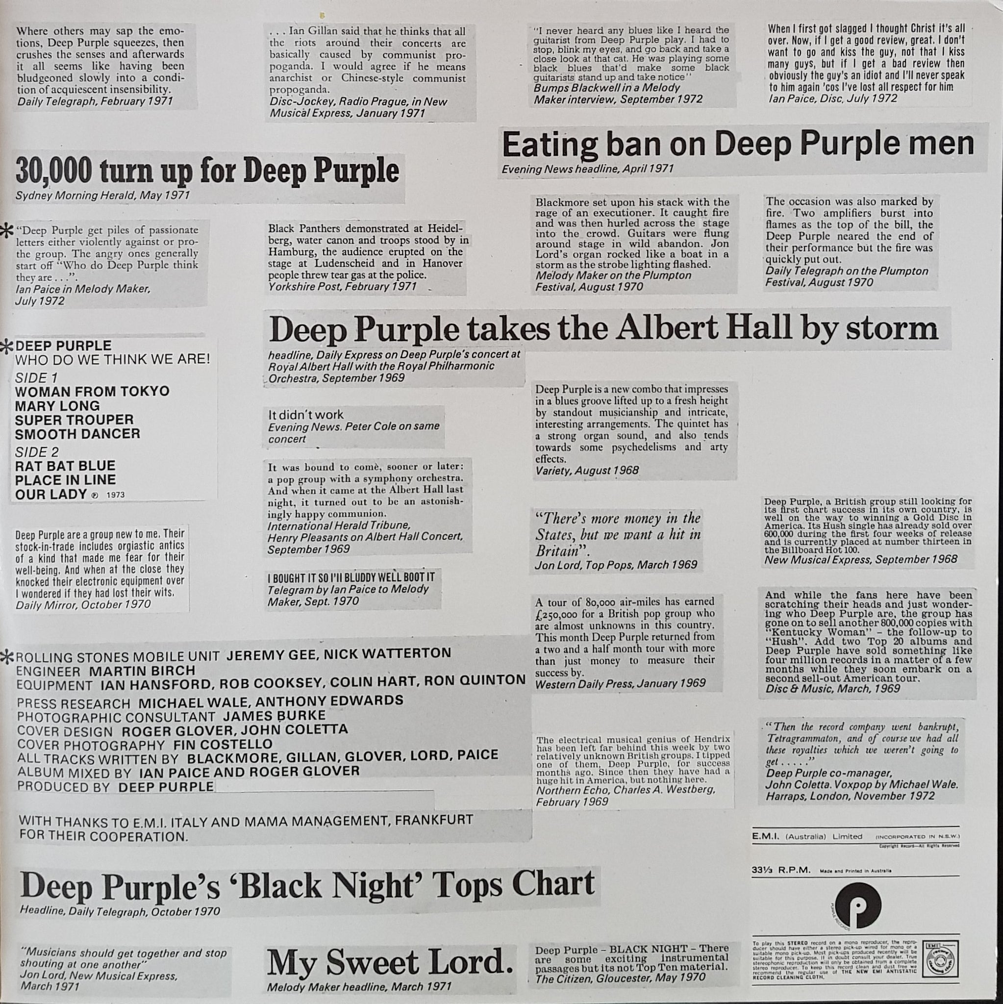 Gatefold Cover w.Insert. 1973 Original Purple Records TPS-7508. Laminated cover is nice and glossy with minor scuffs. Minor foxing inside.