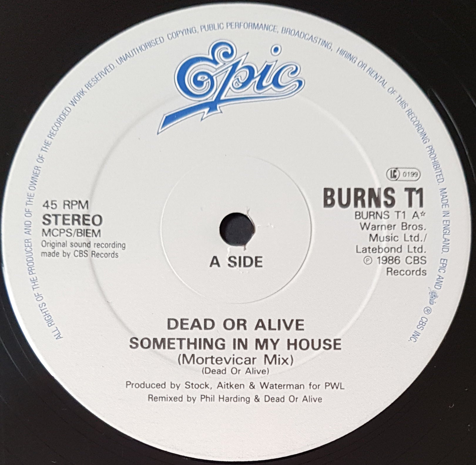 PS. Featuring Mortevicar Mix & Flamenco Version plus DJ Hit That Button. 1986 Epic BURNST1