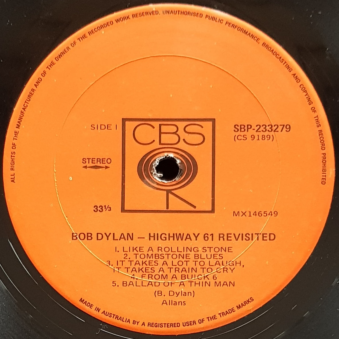 1969 Orange CBS Label SBP 233279. Laminated Cover. Labels have (Allans) Printed At The Bottom Of Track Listing. Cover has minor foxing on rear. Small writing on B Side Label