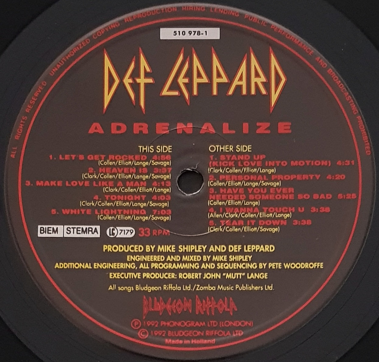 w.Inner Sleeve.1992 Bludgeon Riffola 510 978-1. Minor Paper Scuffs on Disc