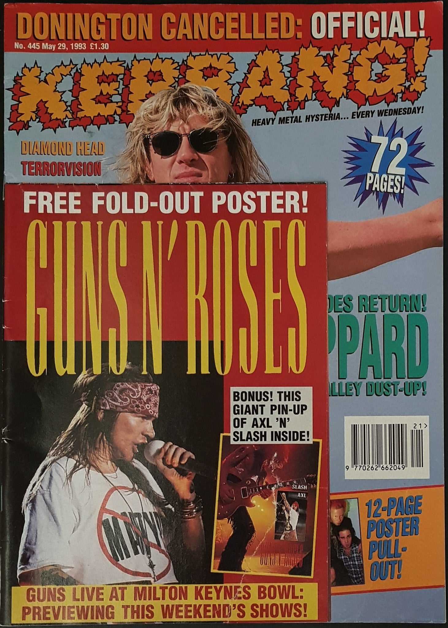 w.Joe Elliott Cover & Def Lep Feature. Guns N'Roses Fold Out Poster is Attached to Cover but Has 3" Tear.