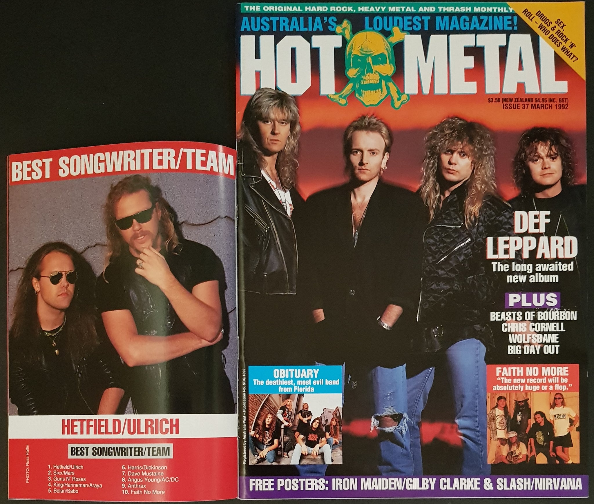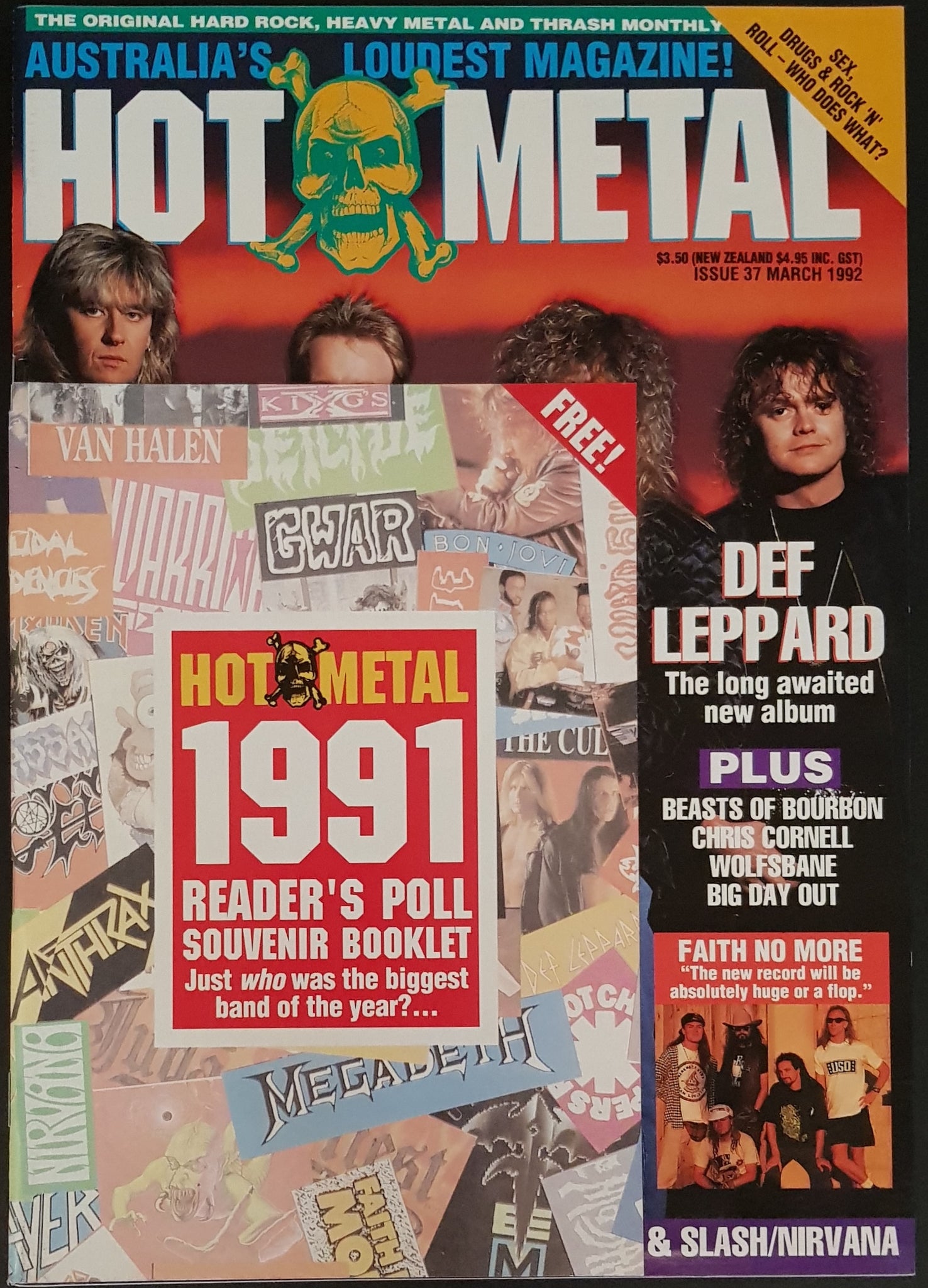 w.Def Lep Cover & Feature. Articles / Pictorials on Metallica, Iron Maiden, Beasts Of Bourbon, Nirvana.