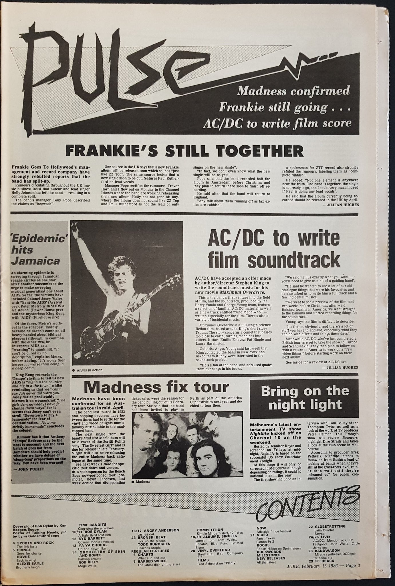 w. Colour Cover & Article. Issue Also Features, Reviews And Or Has Ads For AC/DC, Ya Ya Choral, Rose Tattoo, Talking Heads Poster + Others.