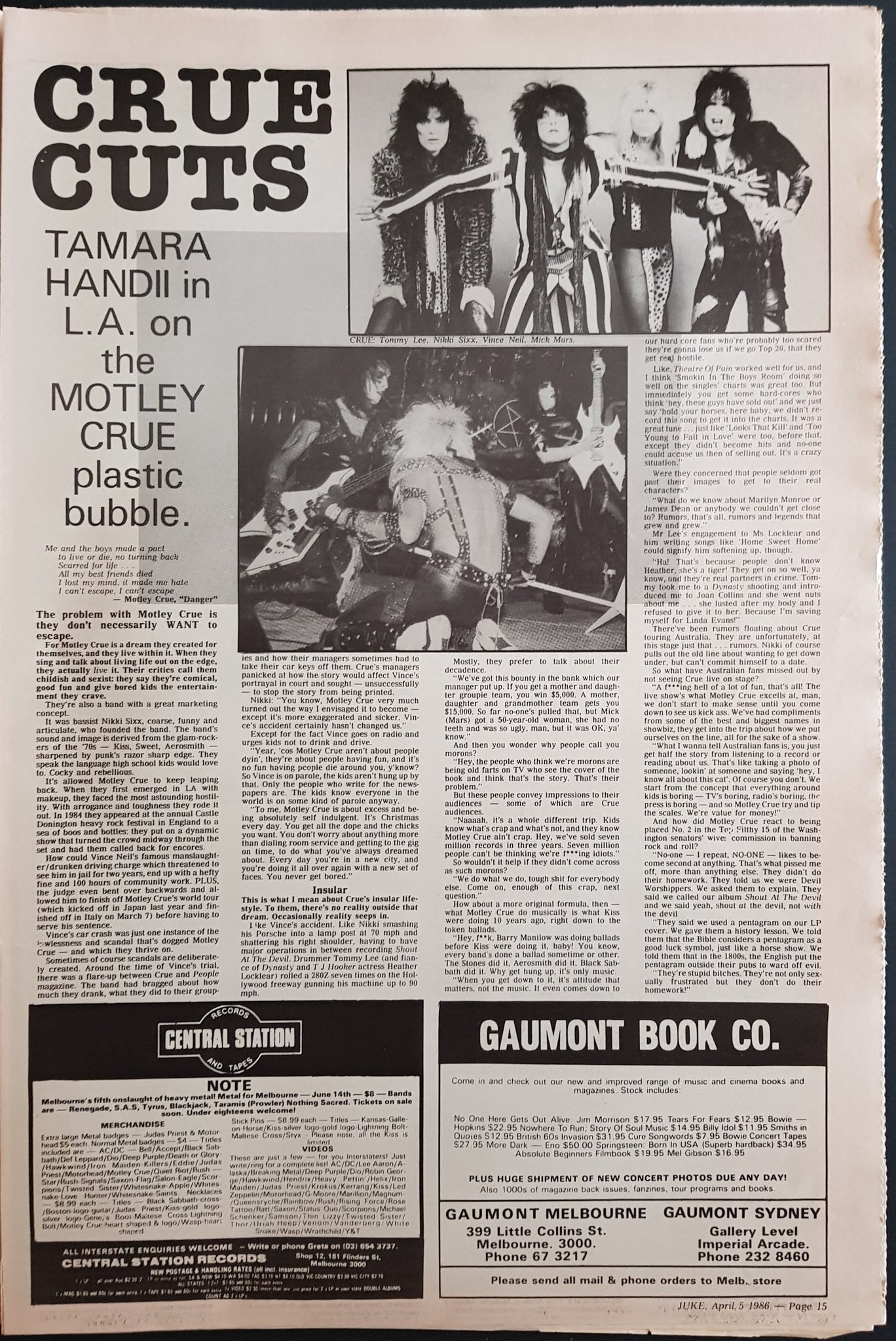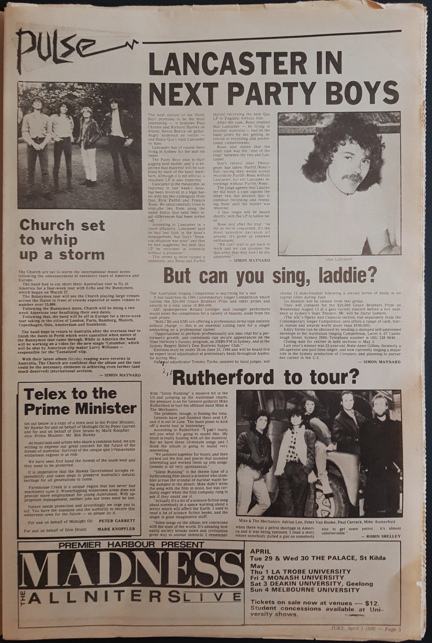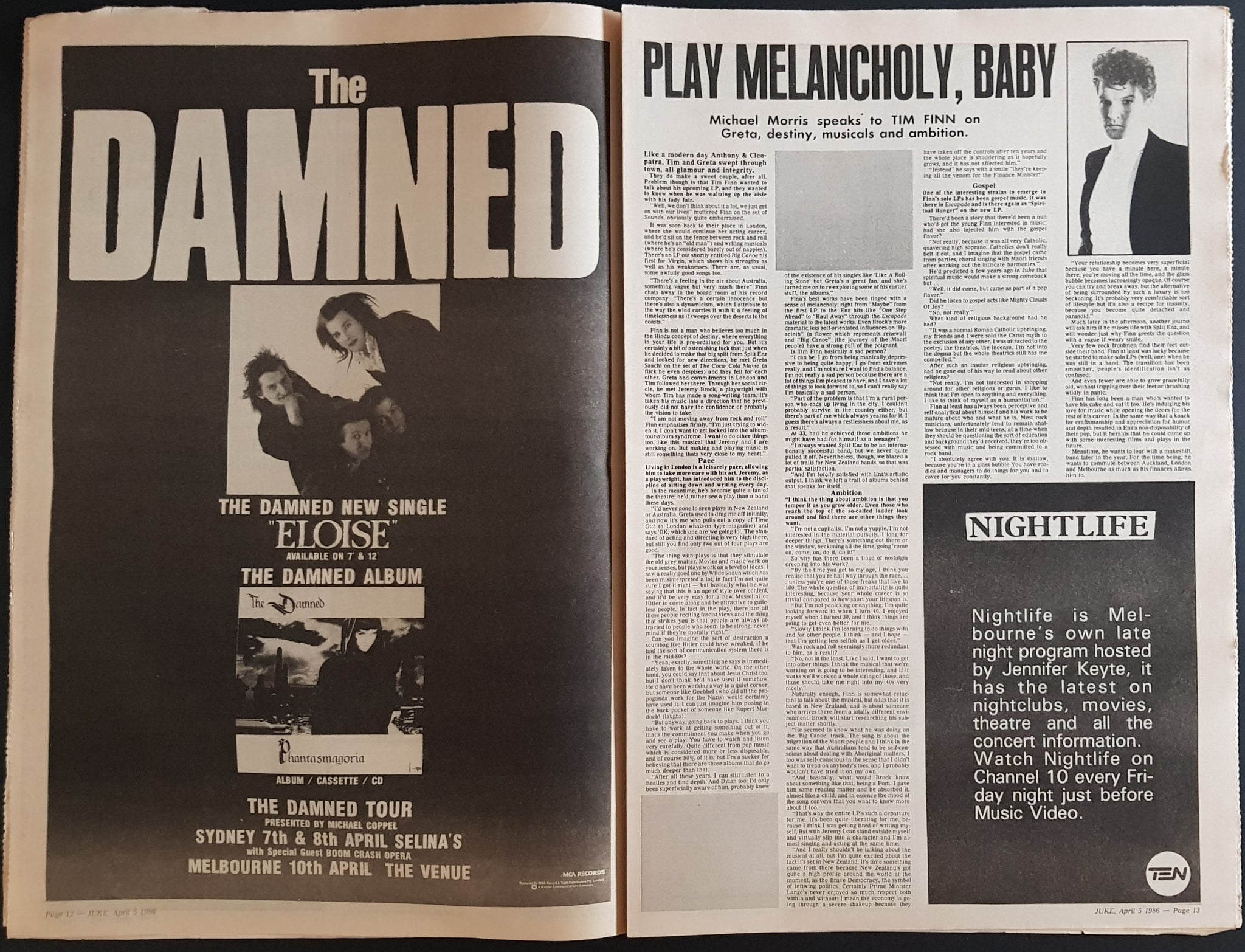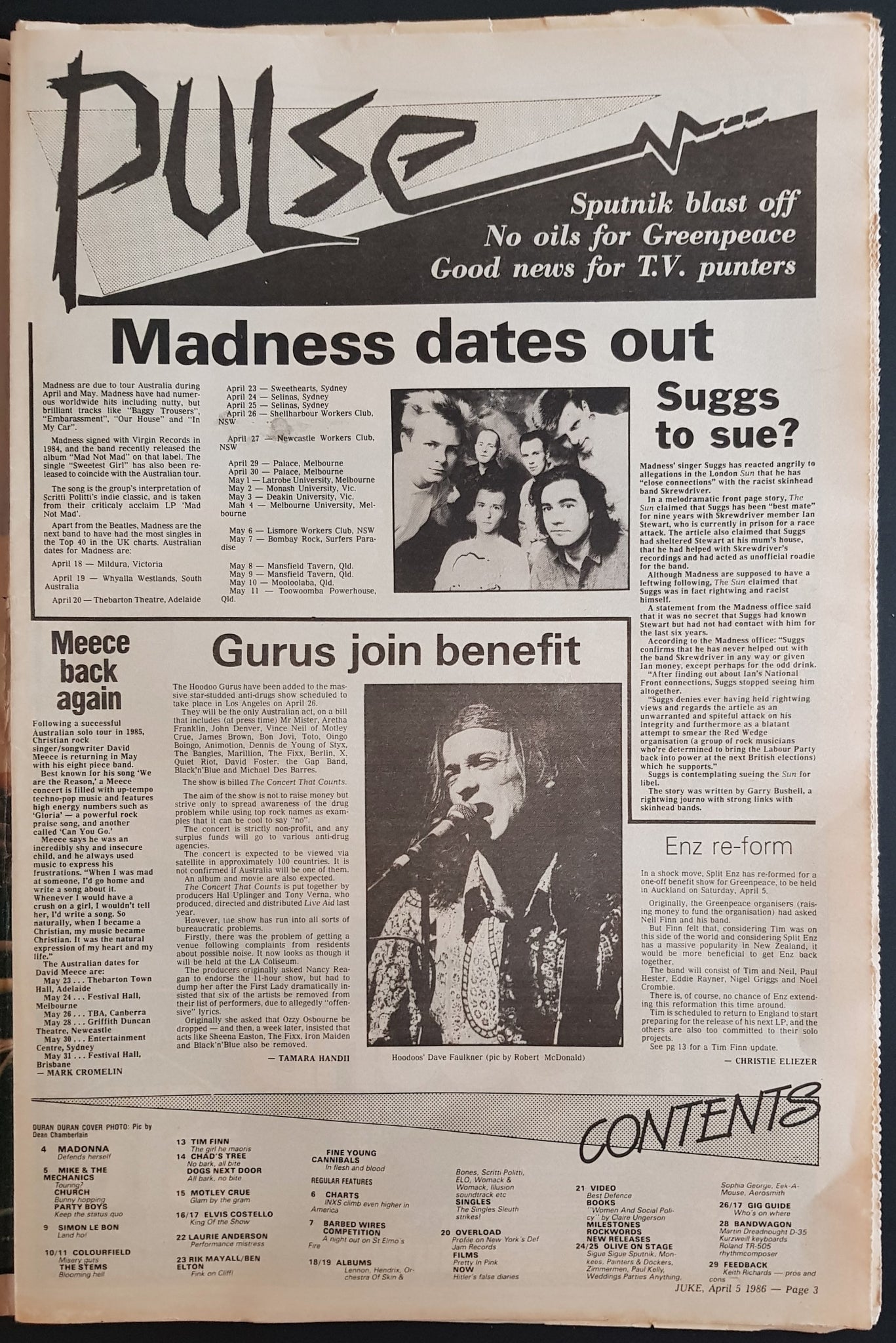 w. Colour Cover & Article. Issue Also Features, Reviews And Or Has Ads For Madness, Alan Lancaster, The Church, Stems, Damned, Tim Finn, Motley Crue, Elvis Costello, Paul Kelly + Others.
