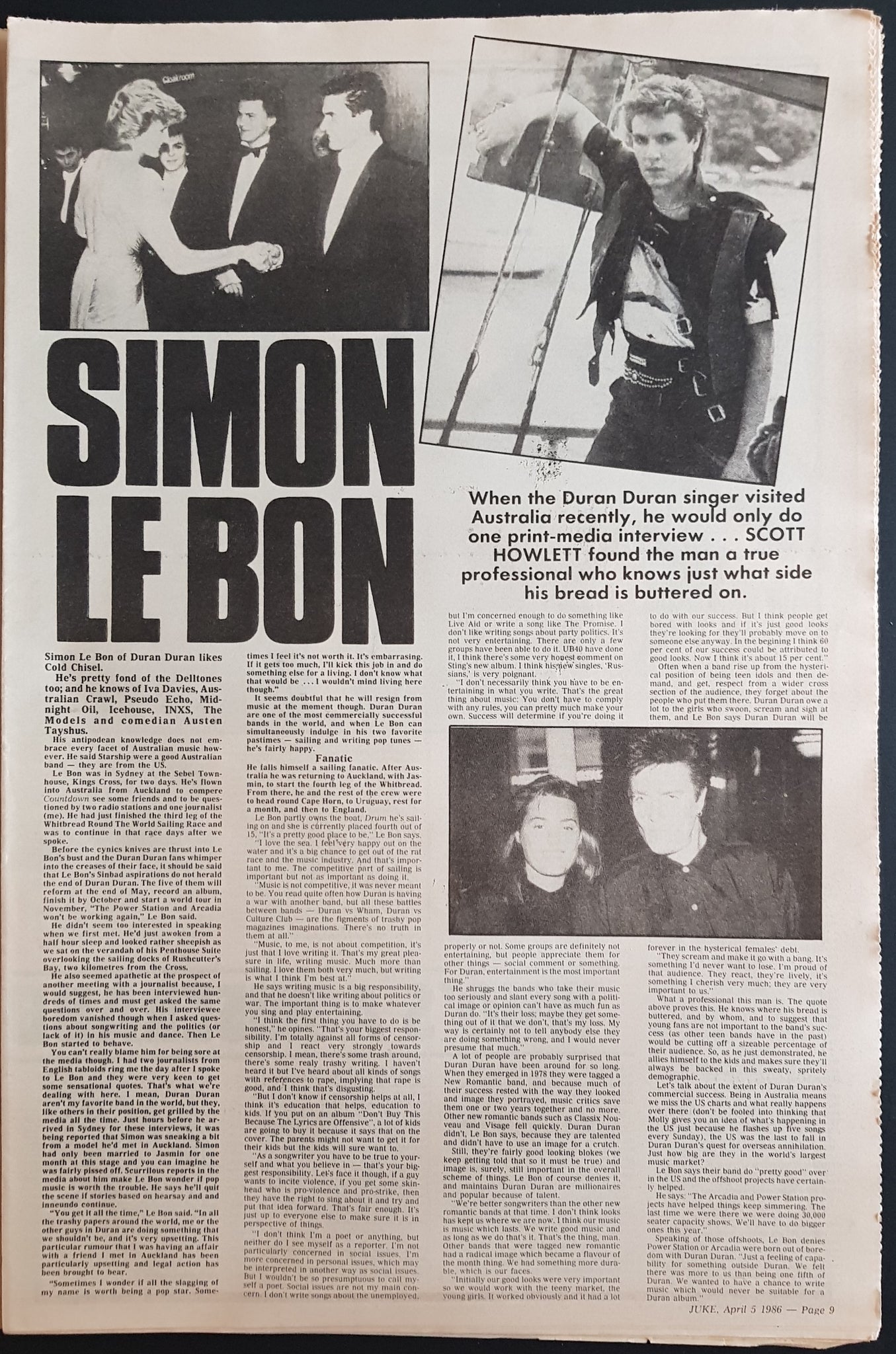 Duran Duran (Simon Le Bon)- Juke April 5 1986. Issue No.571
