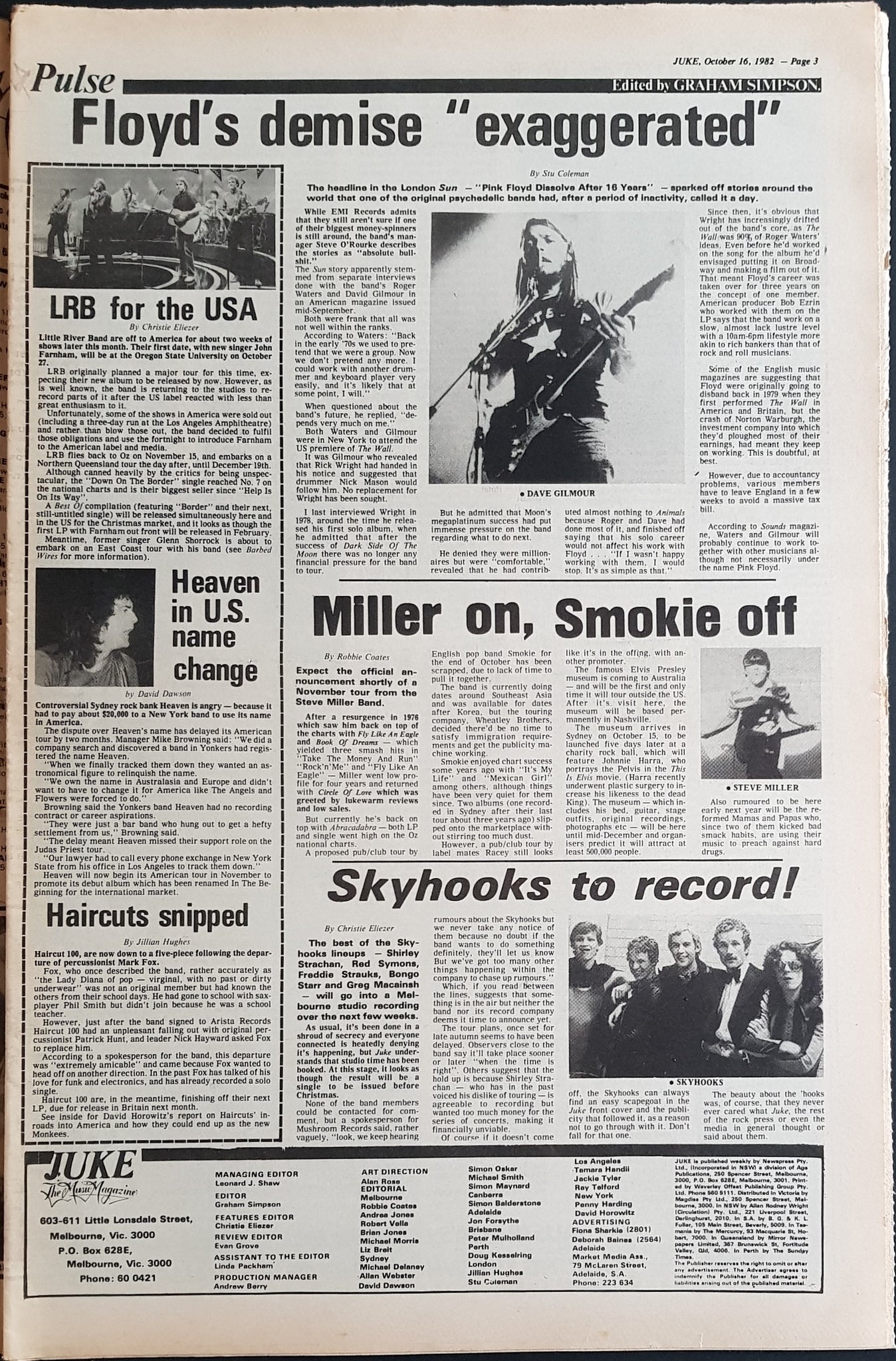w. Simon Cover & Article. Issue Also Features, Reviews And Or Has Ads on Pink Floyd, Little Murders, Abba, Simple Minds, Hunters & Collectors + Others. Small tears on cover