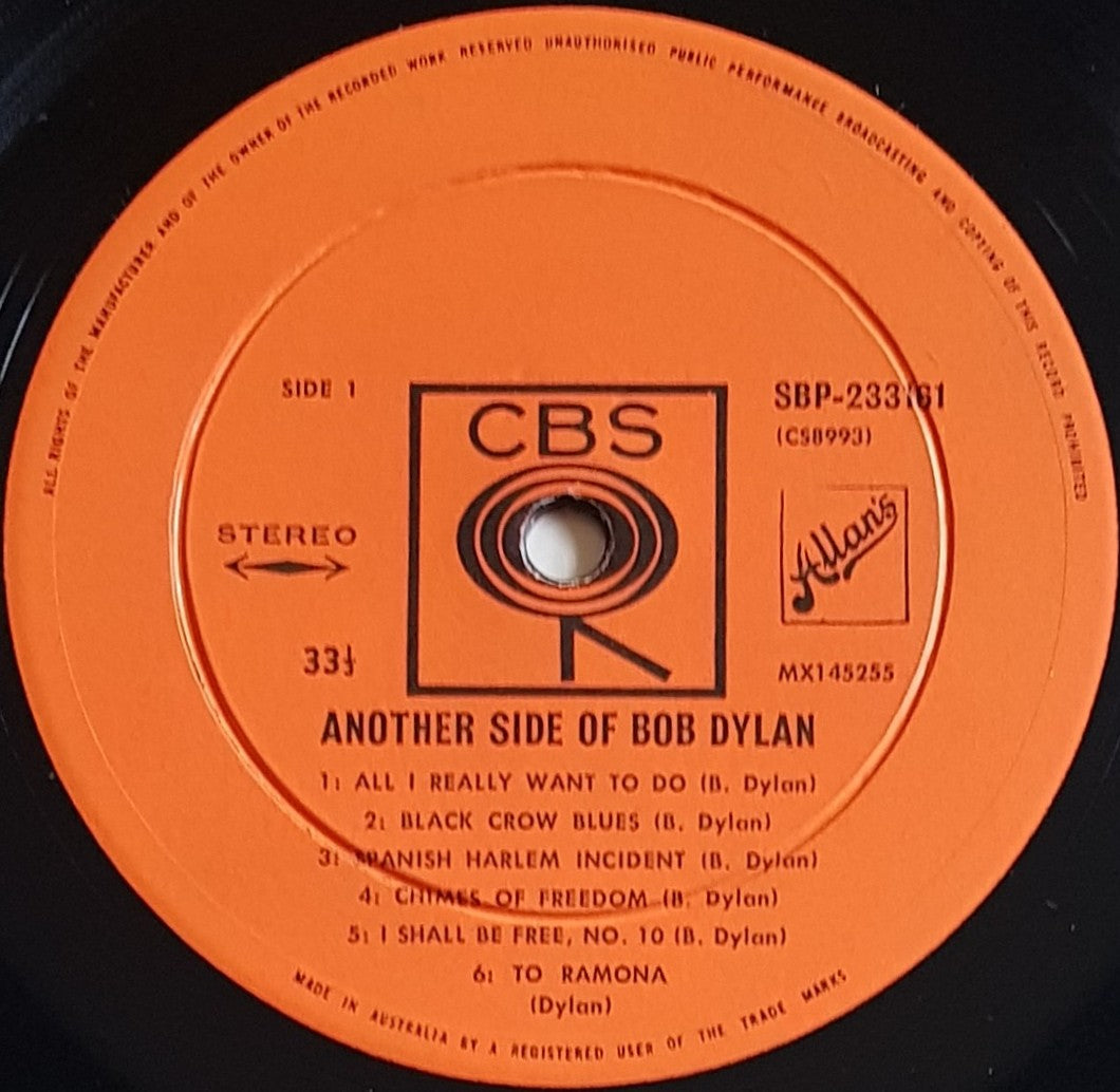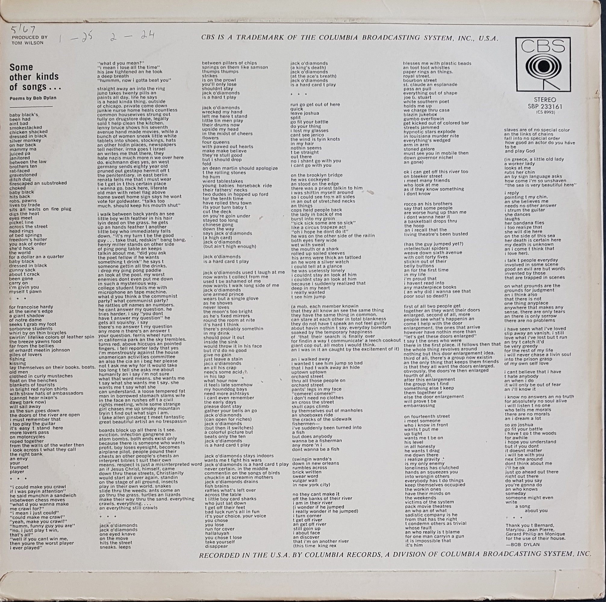 1967 Stereo CBS SBP-233161. Laminated front cover has some surface wear, surface scrapes, creases along spine, small bumps, tear and tiny corner cut along bottom seam. There is a price tag stain under the laminate! Small writing on back