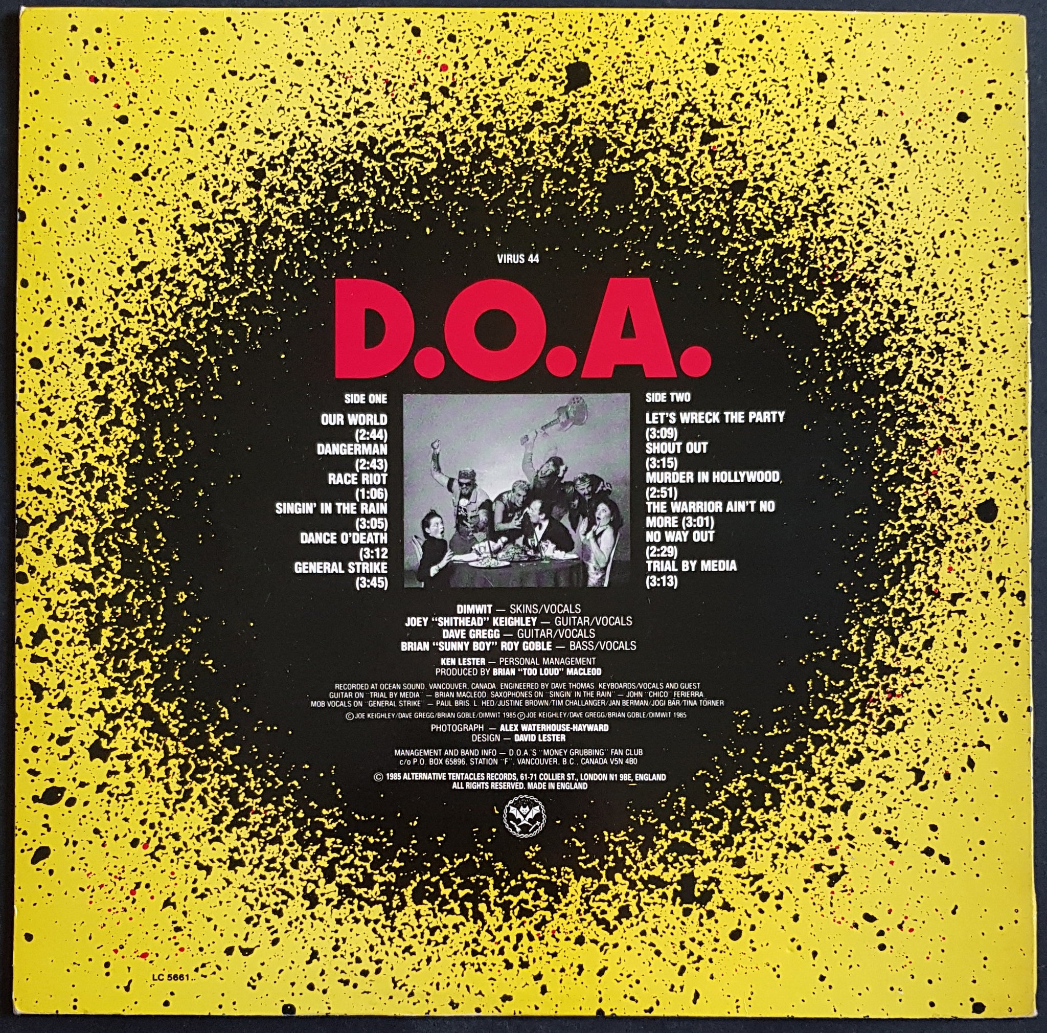w.Insert. 1985 Alternative Tentacles VIRUS 44. Cover has light creases along seams. Minor foxing on labels