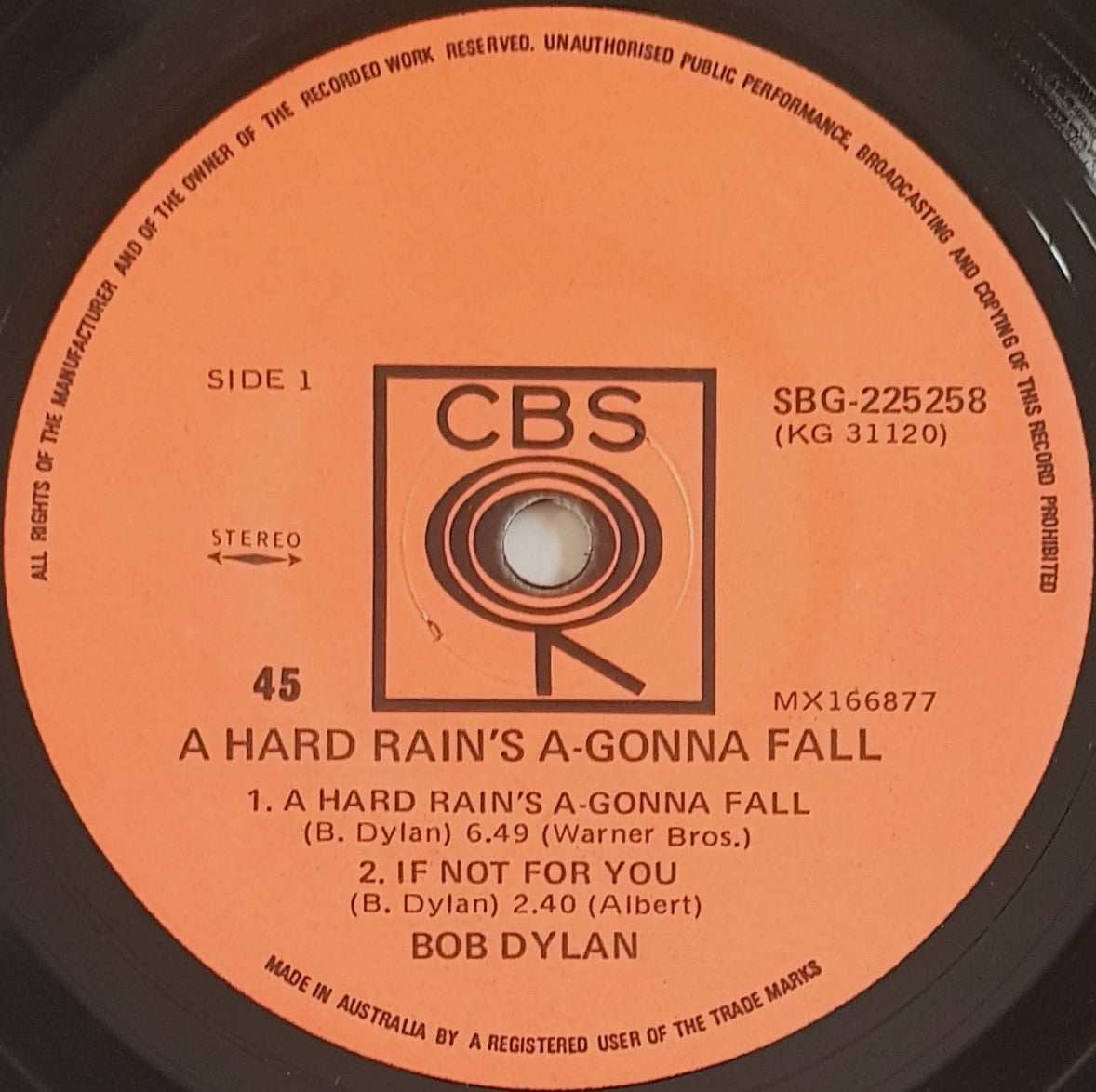 EP PS. 1972 CBS SBG-225258. Minor Wear and Scuffing on Cover. Light Scuffs on Disc. Although One Of The Last EPs Issued here, Quite Possibly the Rarest.