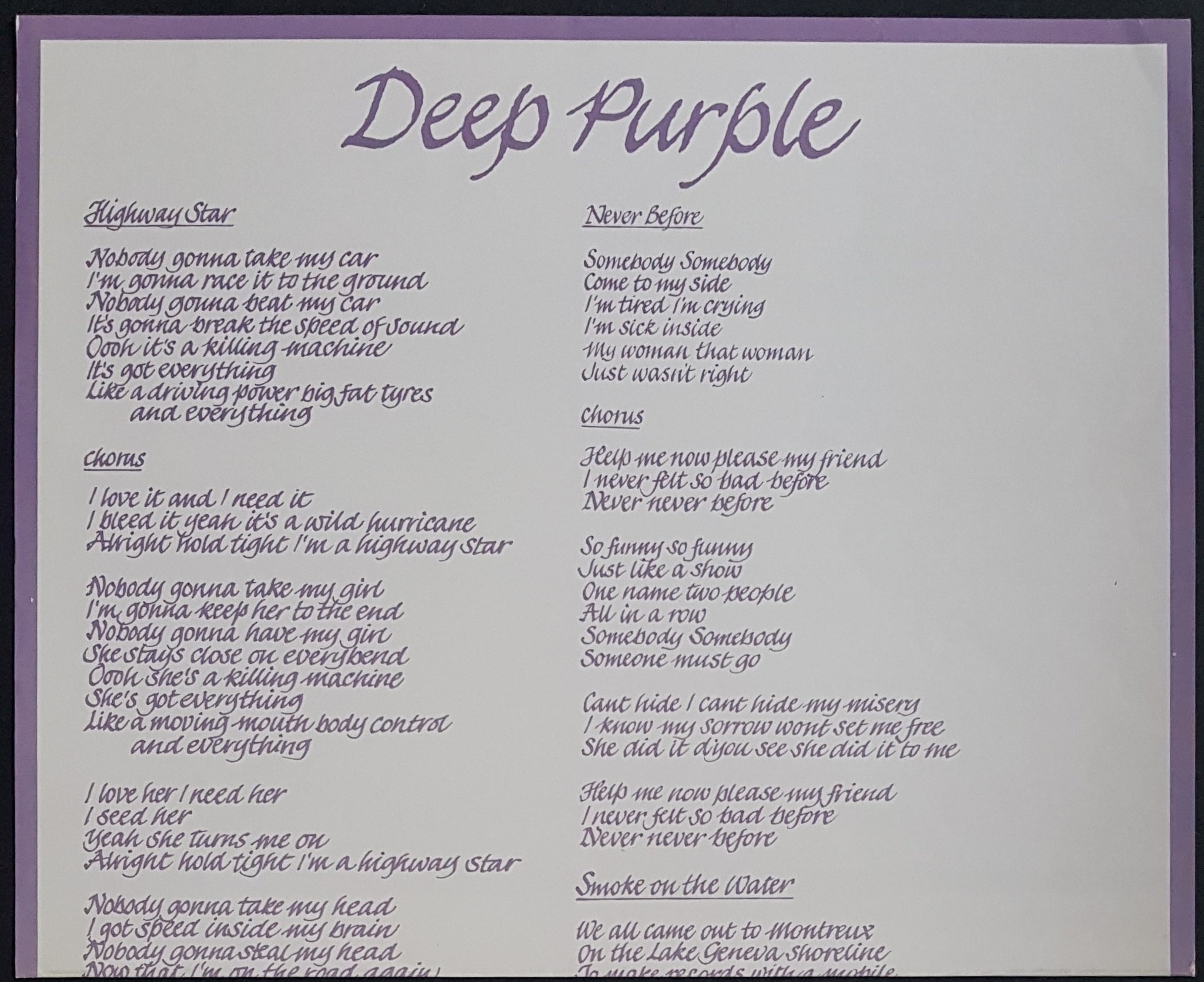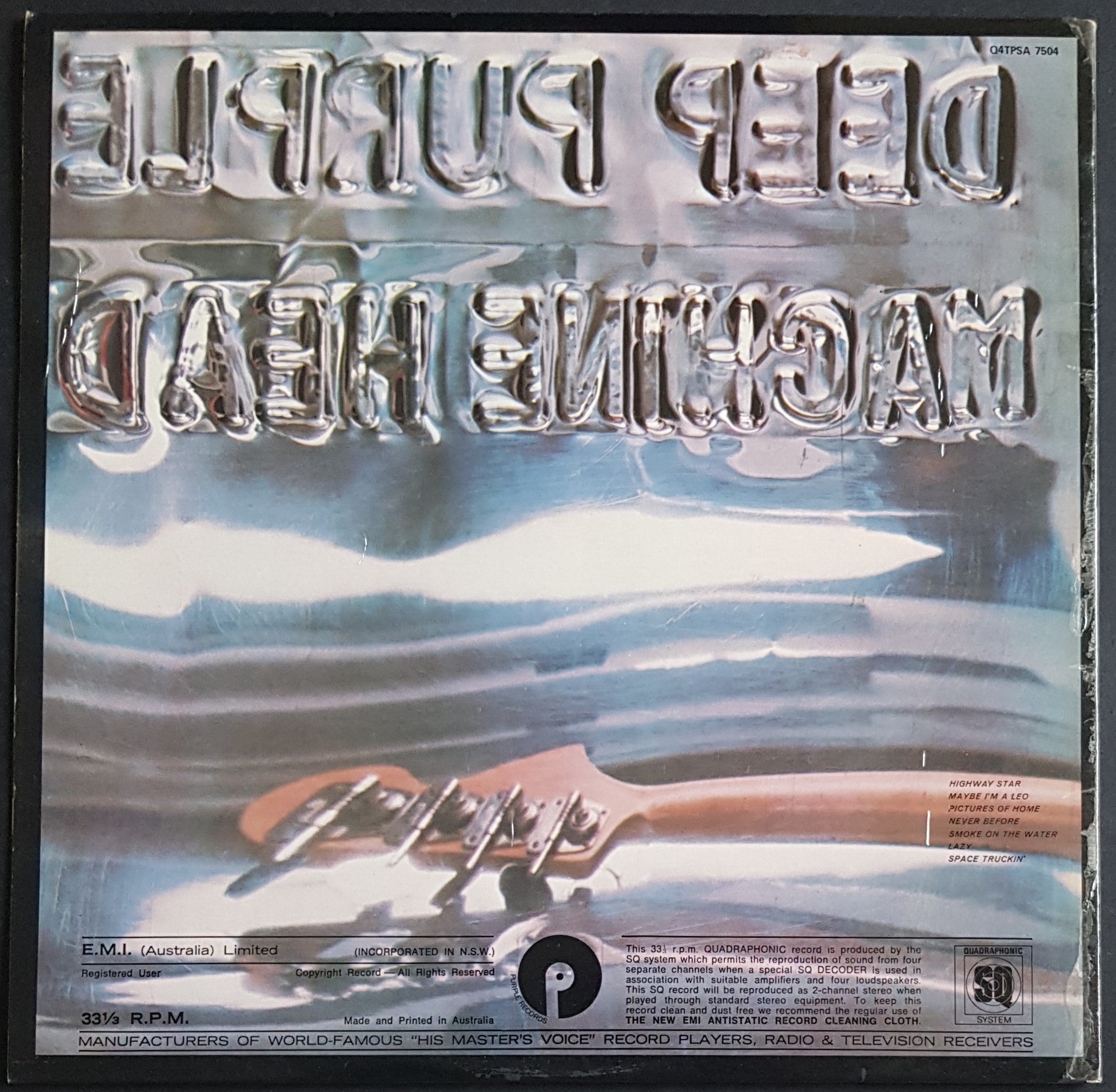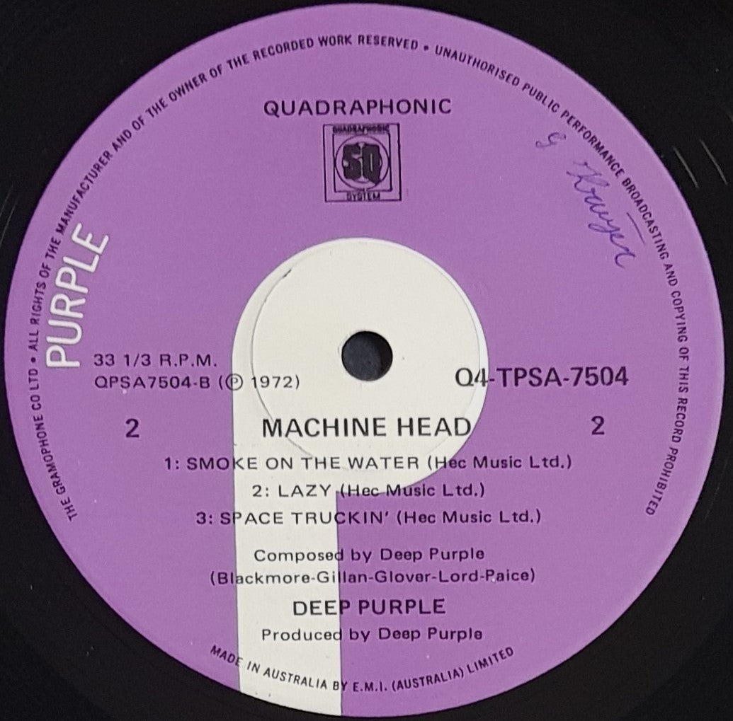 Laminated Gatefold Cover w.Insert. 1972 Purple Records Q4-TPSA-7504 Quadrphonic Press. Affiliated Publishing Side 1. Hec Music Ltd Publishing Side 2. Small writing on Label. Very Clean Copy