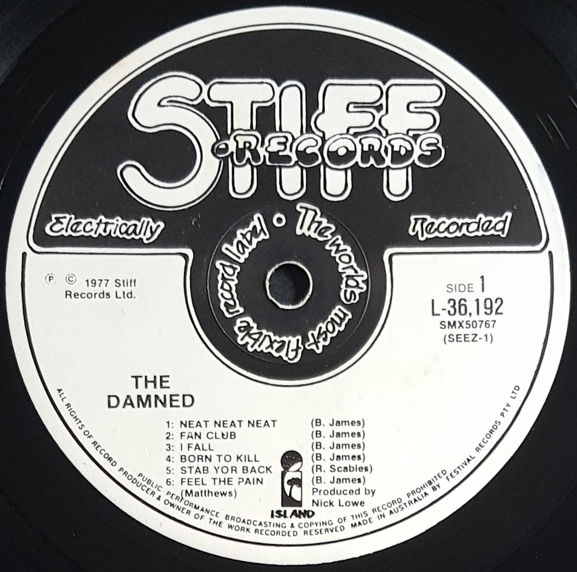 1977 Original Black & White Festival / Island /Stiff Label L-36192. Corner crease, light creasing along spine and foxing on rear.