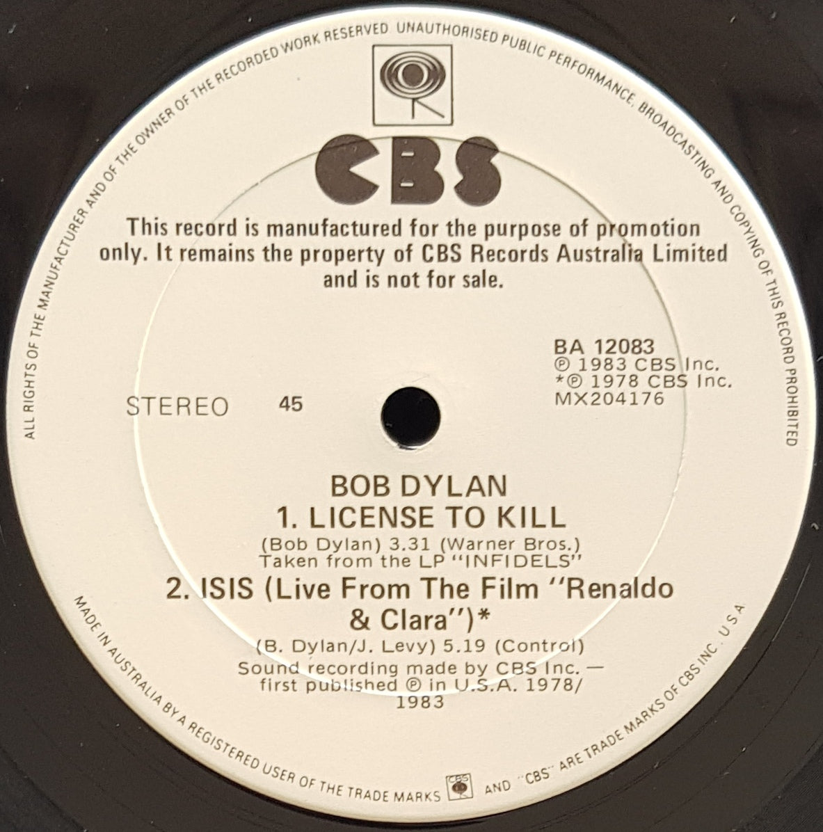White Label Promo, 3 Tracks. 1983 CBS BA 12083