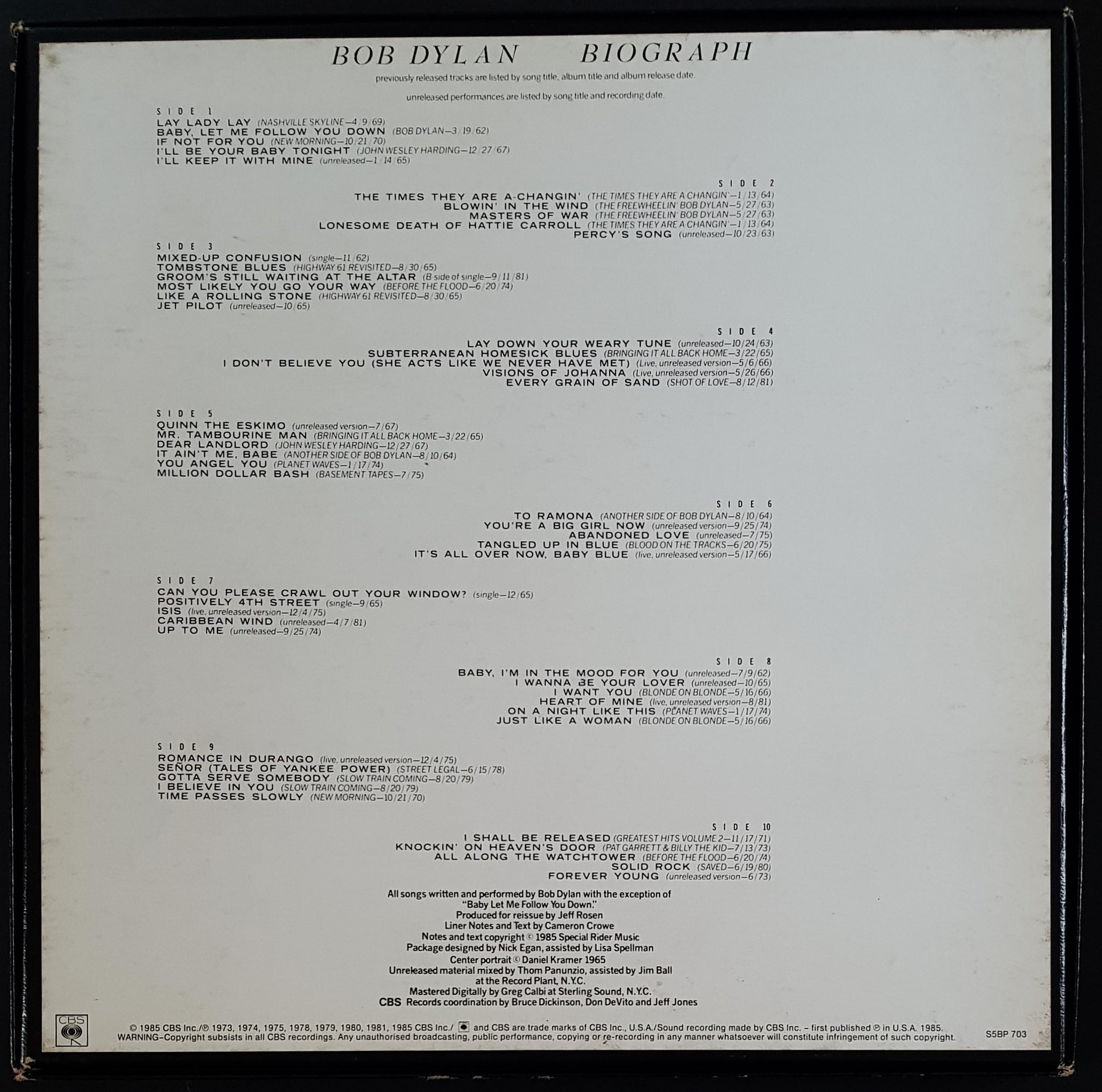 Box Set w.36p. Booklet and Individual Inners for all 5 LPs. 1985 CBS S5BP703. Box Lid has minor surface scuffing / wear, corner wear & 1 split corner. Back Cover has minor wear. Records are EX or Better.