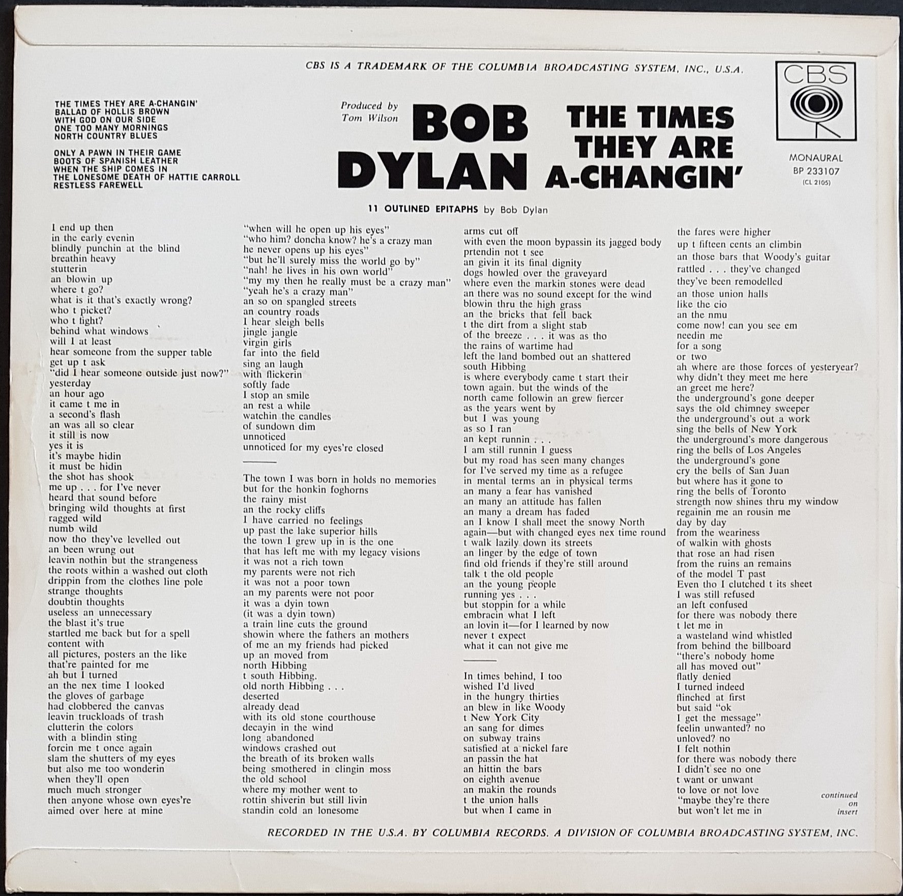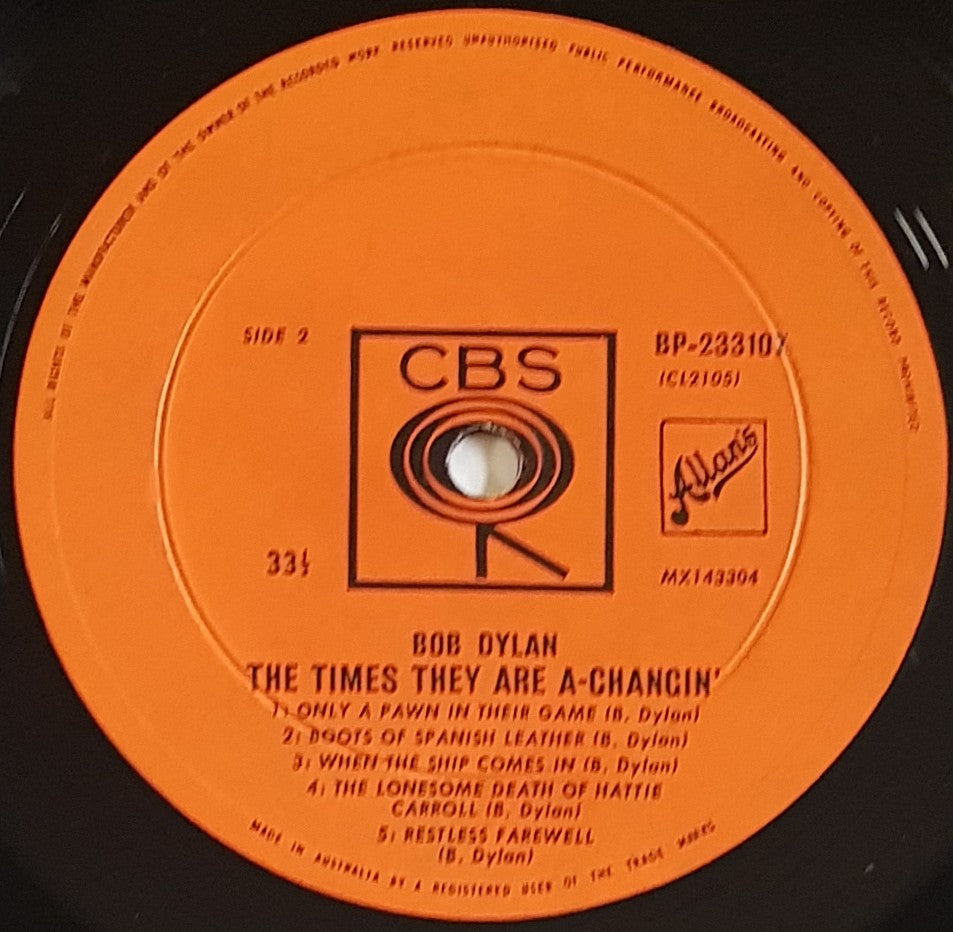 w.Flip Back Cover & Insert. 1964 Original MONO Orange CBS Label BP-233107. 2.8cm x 2.8cm CBS Logo & 1.1 x 1.2cm ALLAN's Logo. Song titles and writing credits in Italic text. Minor ring wear and shelf wear on bottom seam. Minor scuffs on disc