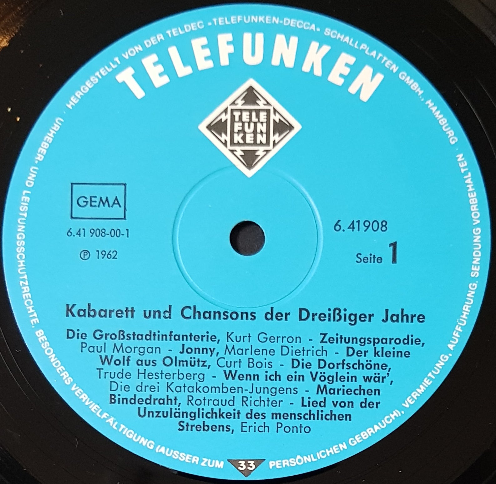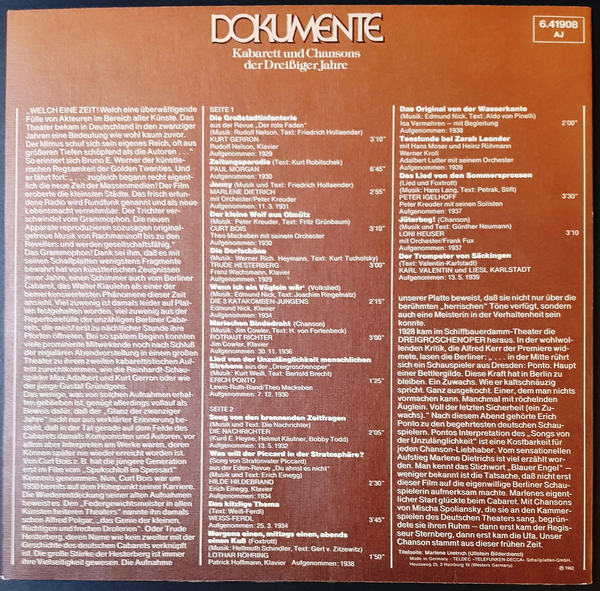 Various Artists Compilation w.1 Marlene Track & Her Picture on Cover. TELEFUNKEN 6.41908