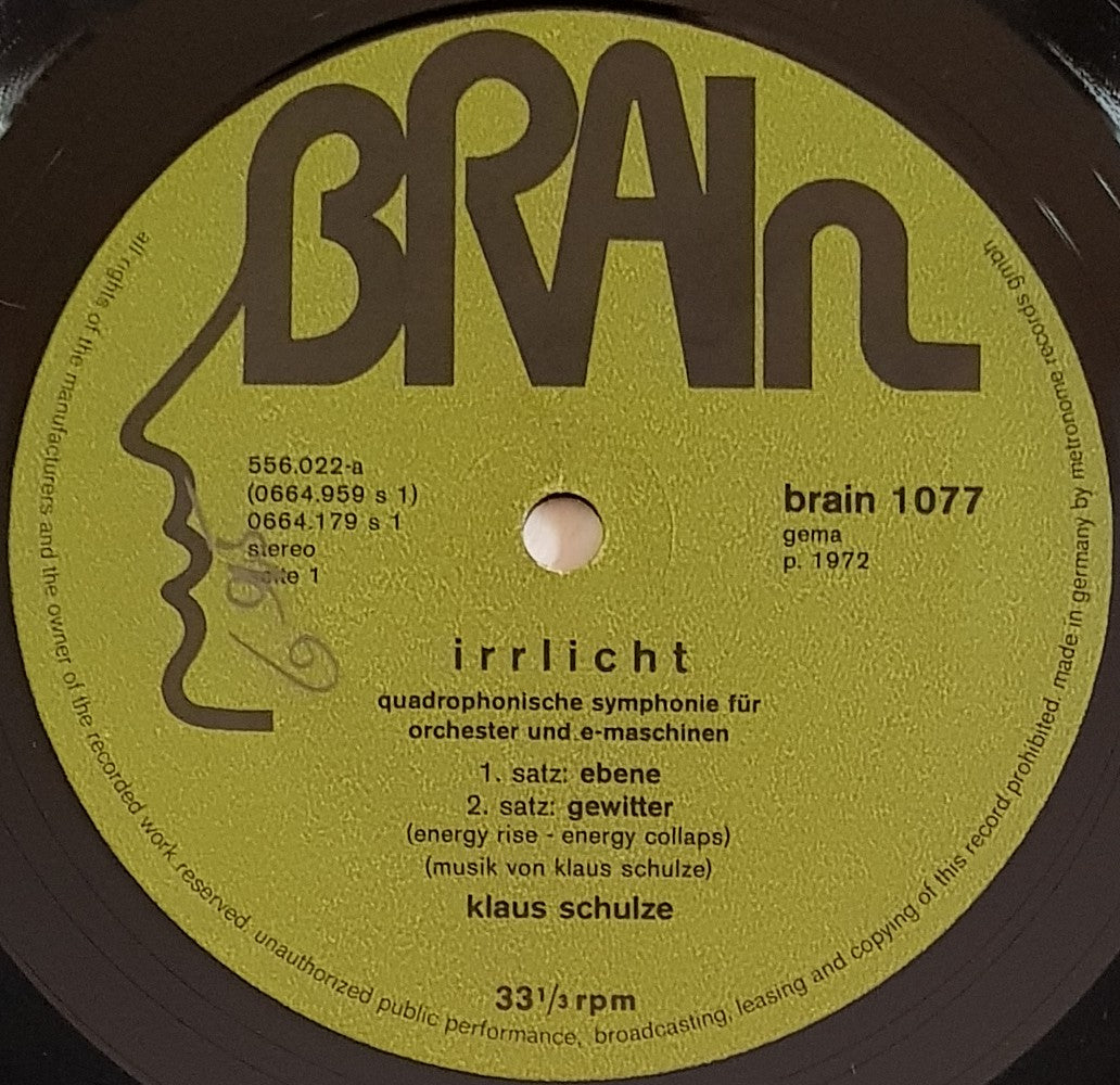 Reissue. 1975 Brain BRAIN 1077. Edge wear and creases along seams on cover, small surface tears and writing indentations. Small writing on label