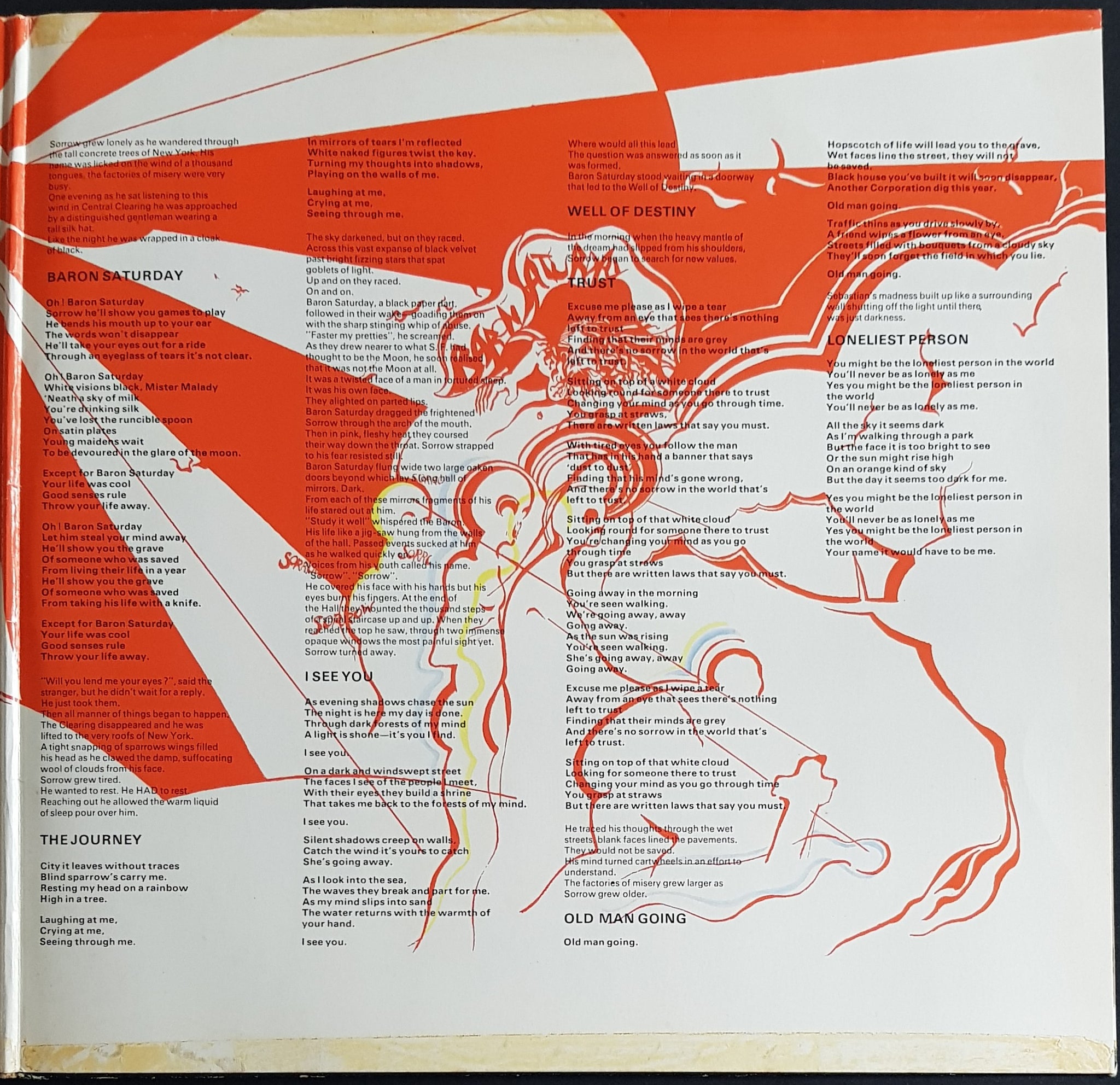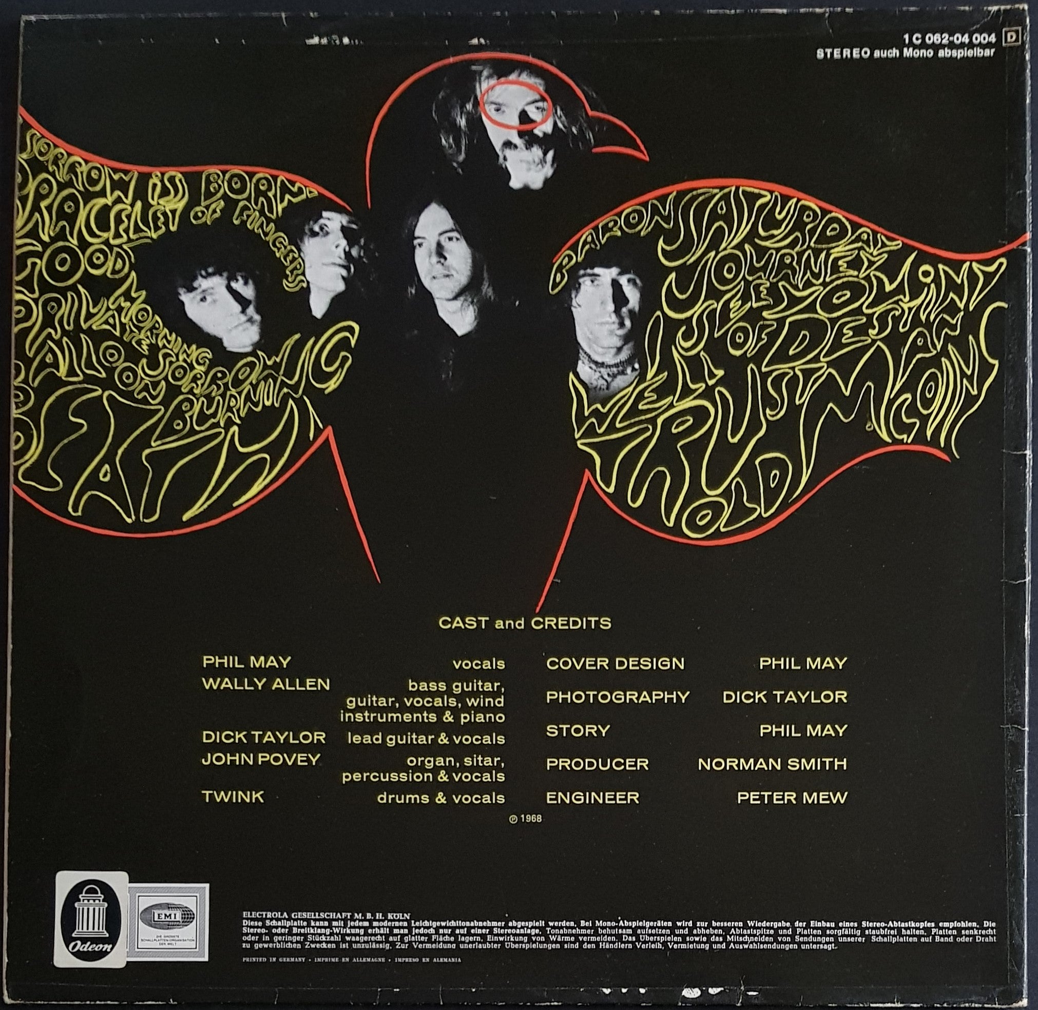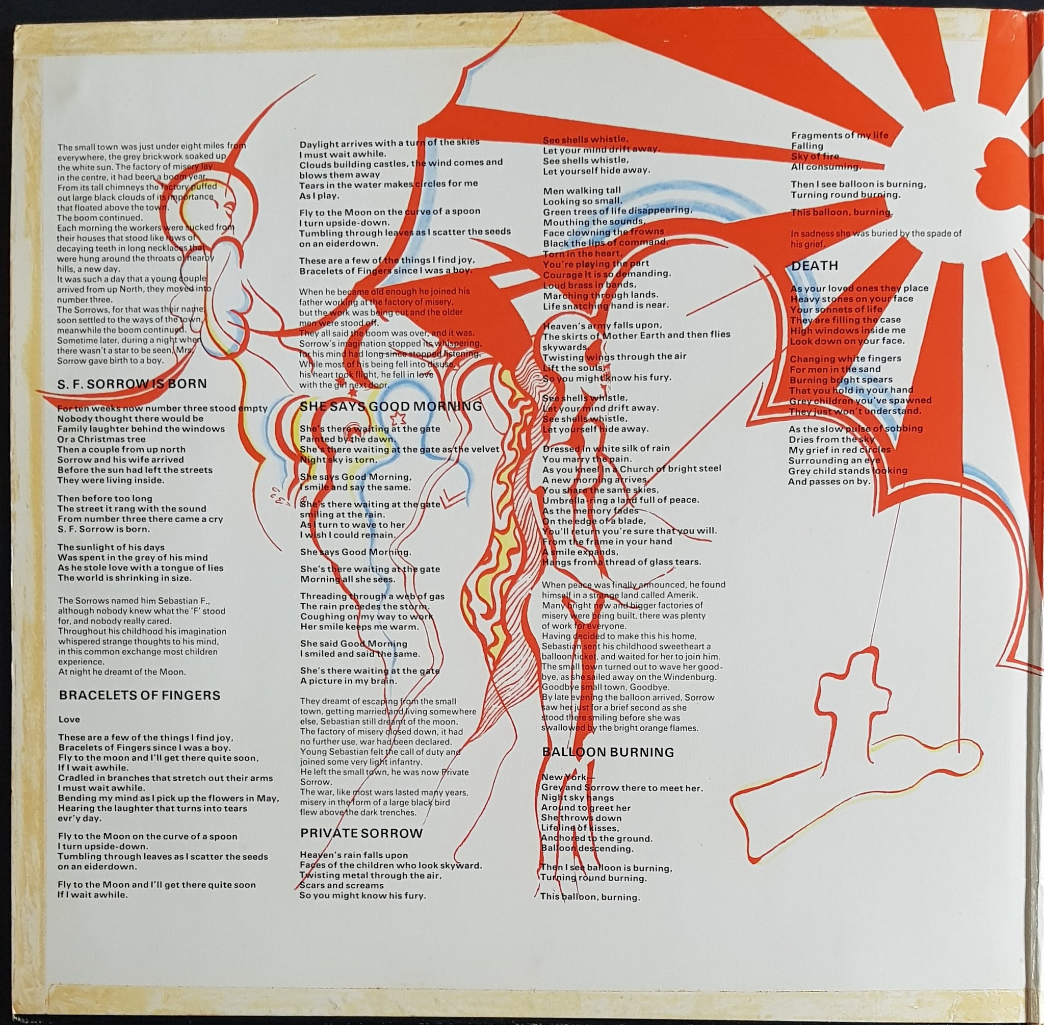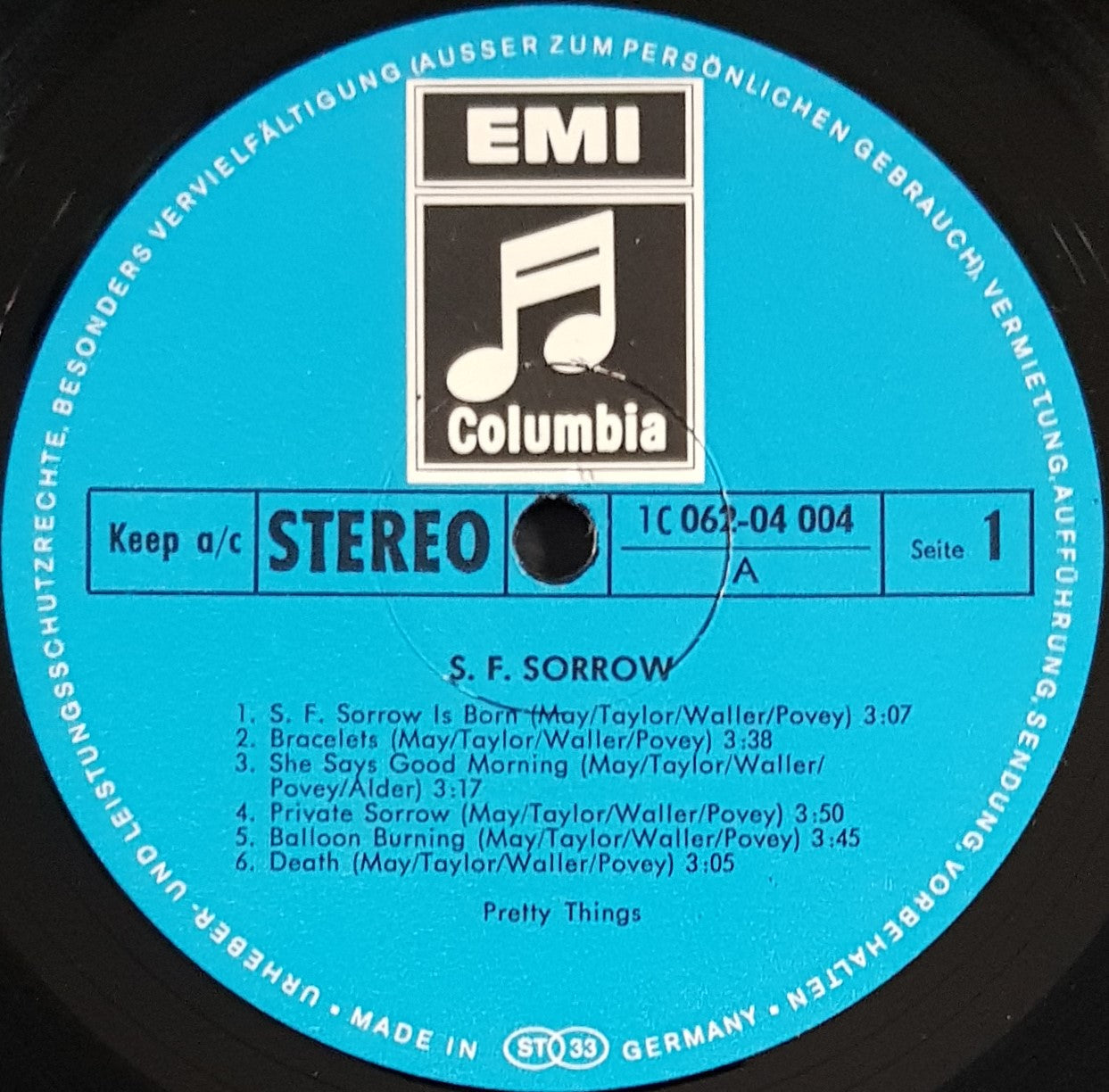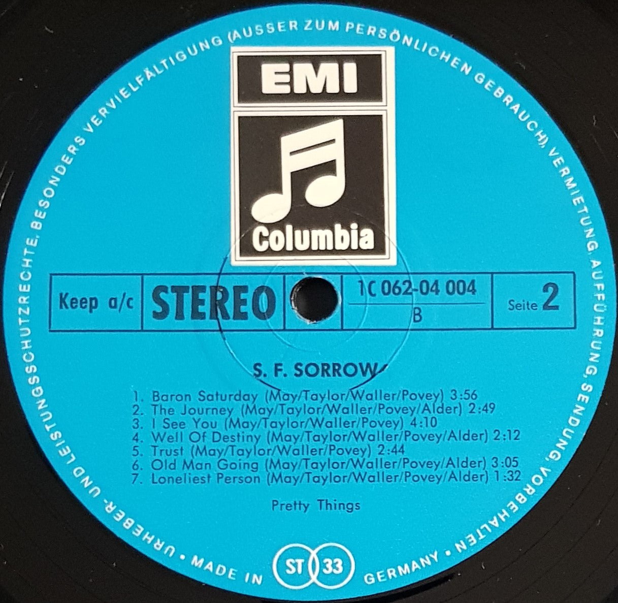 Gatefold Cover. 1969 Columbia 1C 062-04 004. Cover has had cello tape on all seams, over time this has dried and been removed and stained the cover with dry glue on pretty much all seams, it has caused small surface tears around these areas. Surface tears around EMI logo on front cover as well as scuff marks.
