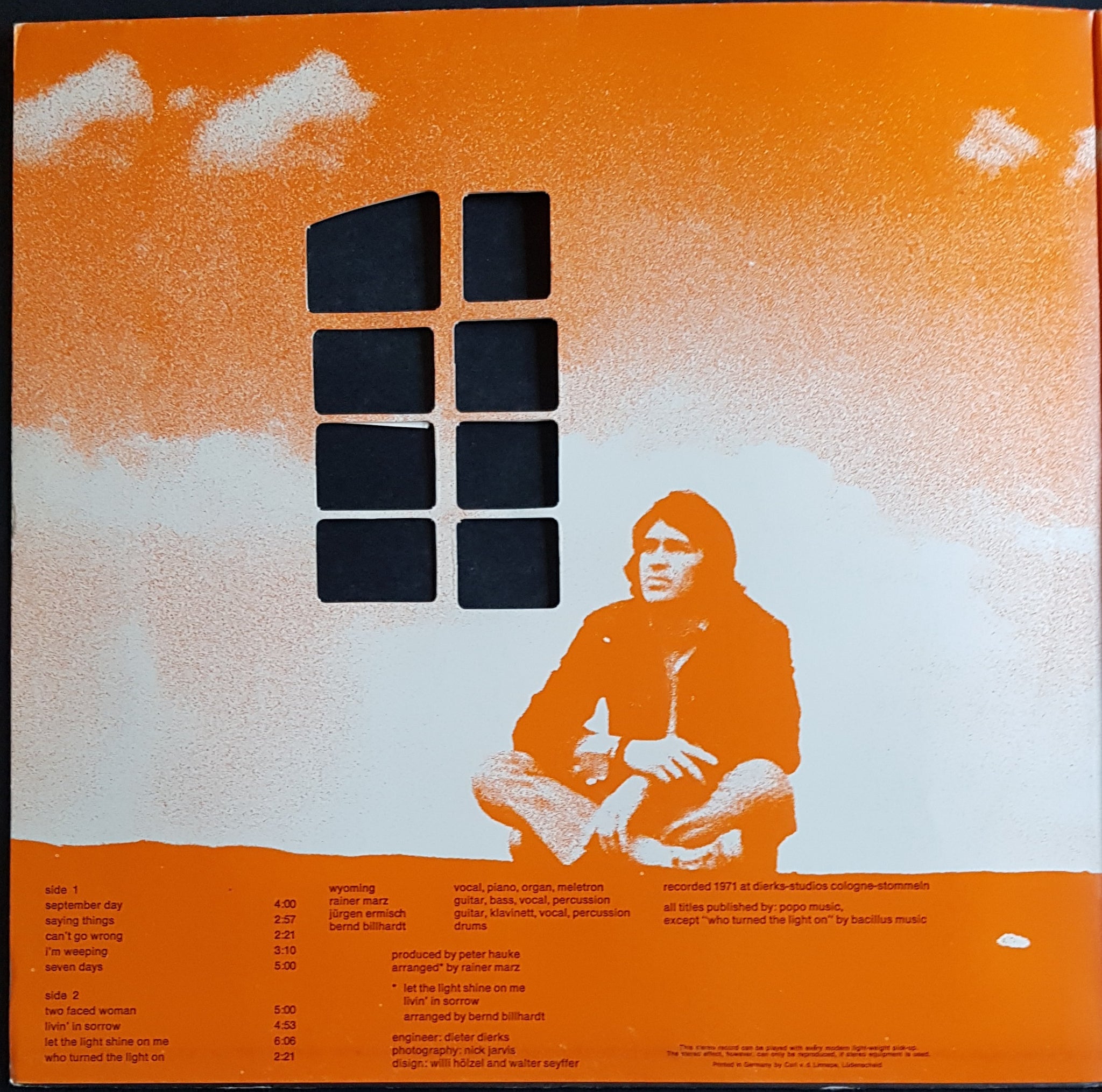 1971 Bacillus Records 6494 010. Cover has edge and surface wear. Window pane is damaged, with one piece split, and one piece is missing. Small stain on rear.
