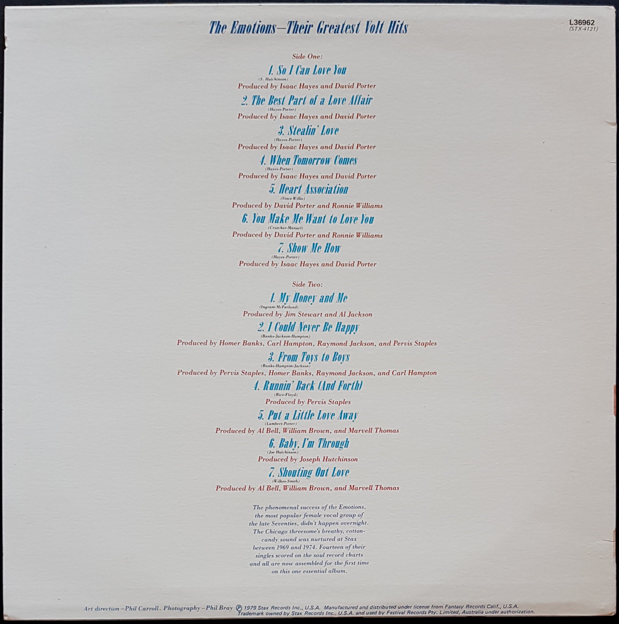 1979 Stax L36962. Minor ring wear and tiny surface tear on cover