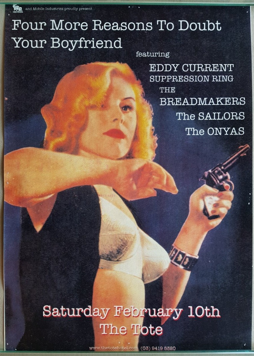 For Gig at the Tote Sat. Feb.10 2007 with The Breadmakers, Sailors & Onyas. 29cm x 42cm. Previously displayed with staple holes on edges