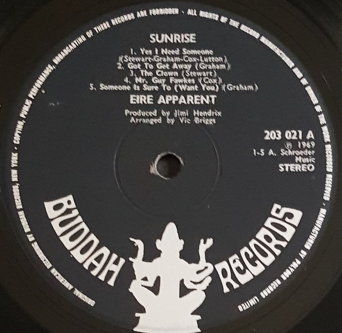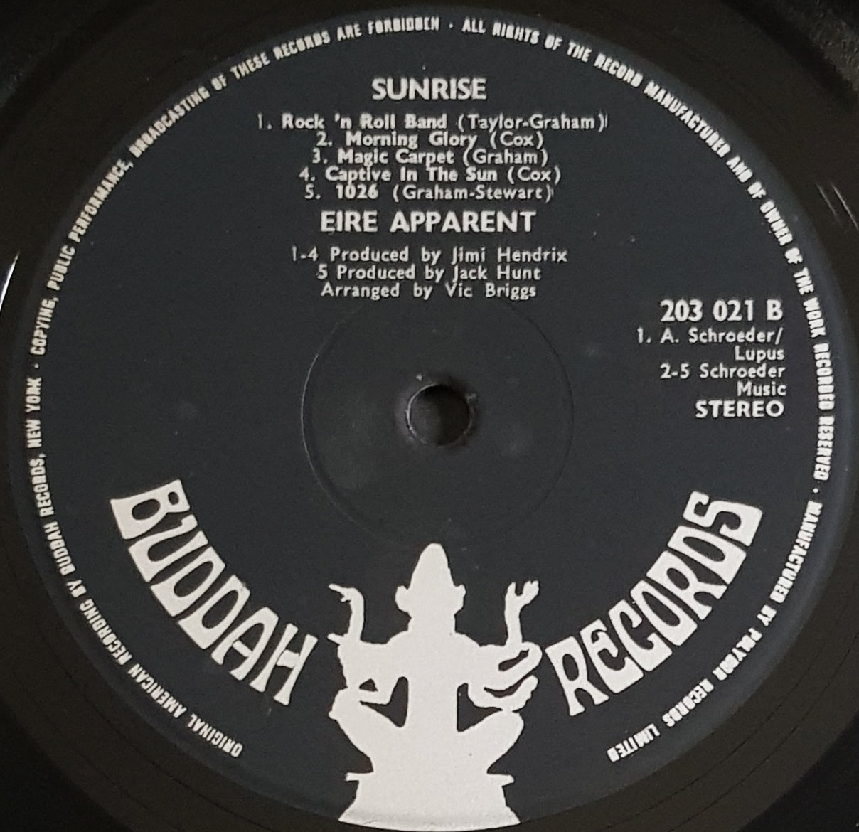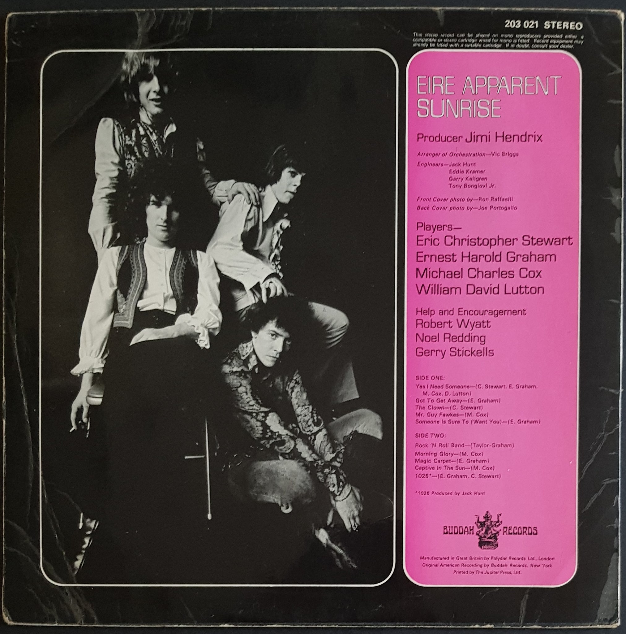 1969 Buddah Records 203 021. Produced by Jimi Hendrix. Cover has a few creases and laminate lift at spine but no splits. Slightly rounded corners at open edge. Record has scuffs and hairlines but plays through well with some background noise in quieter parts and a few ticks along the way.