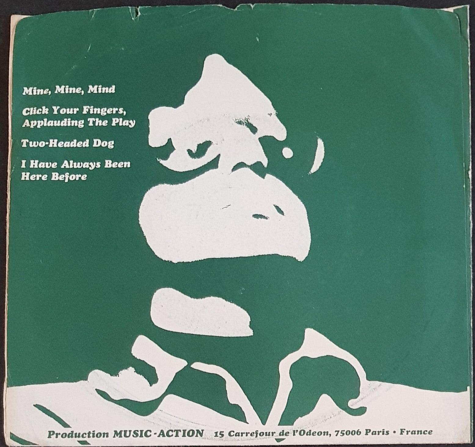 EP w. Green PS. 1977 Sponge SPEP-101. Sleeve has small tear and 2 small pieces missing off rear at top of opening. Small surface tear and stain on front from price tag. Minor haze effect on Disc. Otherwise looks unplayed.
