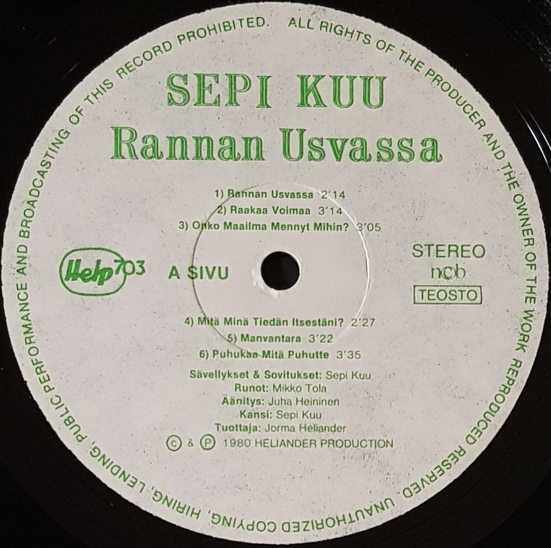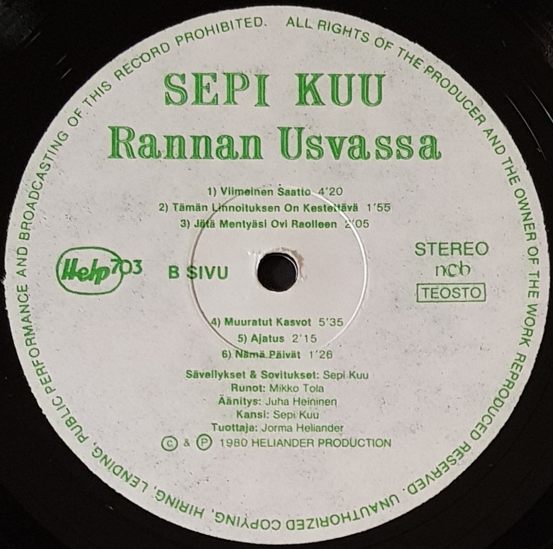 1980 Psychedelic / Folk Rock on Heliander Production HELP 703. Sleeve Has small damage spot on spine and corner wear. Artwork along seams has chipped off in parts and there is a small corner piece of print missing on the back cover. Record is EX if not be