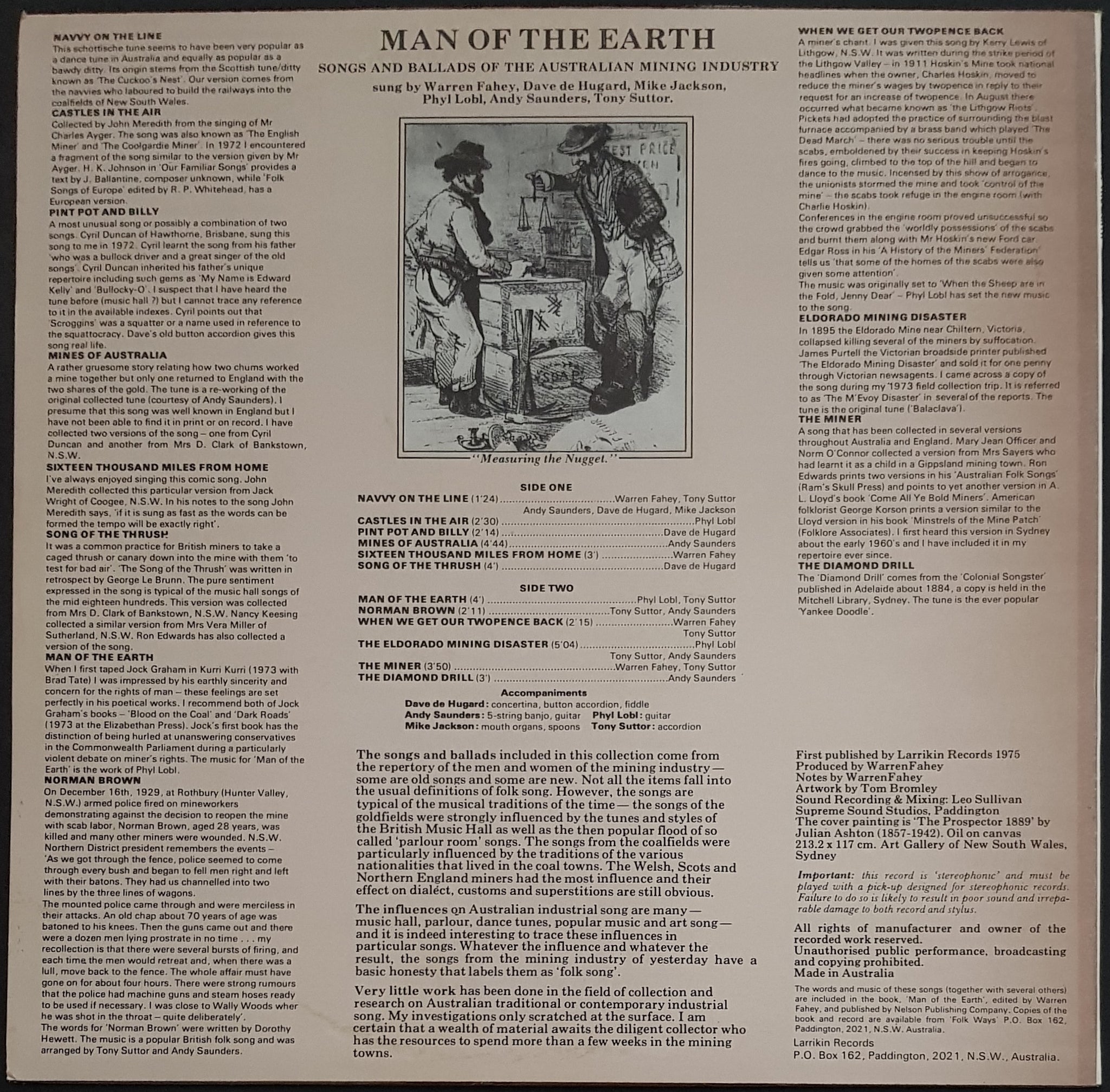 Performed By Warren Fahey, Dave de Hugard, Phyl Lobl, Mike Jackson, Andy Saunders & Tony Suttor. 1975 Larrikin Records 001.