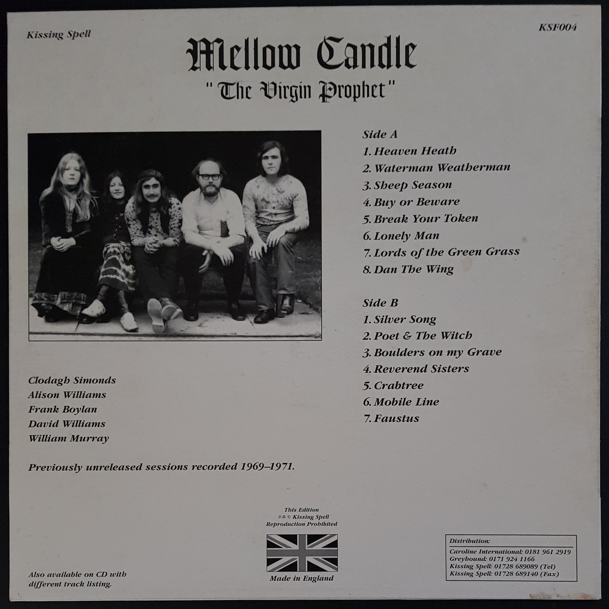 1994 Kissing Spell KSF004. Part of the "Erewhon Underground Folk-Rock Series 1968-1978" 500 Only. Cover Has Surface Marks & Price Tag Stain.