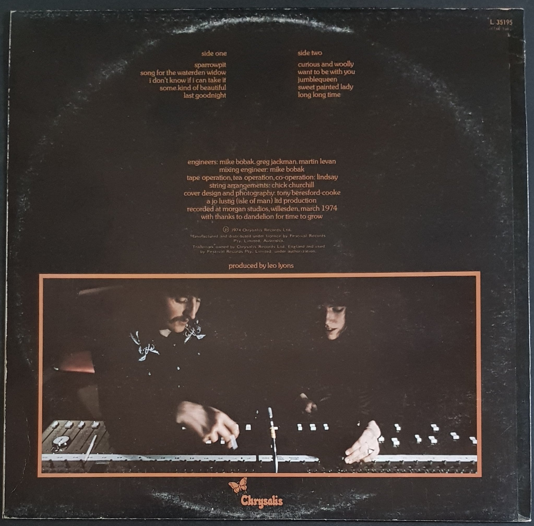 1974 Chrysalis L35195. Laminated finish to front cover has minor scuffing and the are light creases along spine. Back cover has ring wear. Sample Sticker on Label. Light Radial Mark on Both Sides About 1" in From Rim. Nothing major