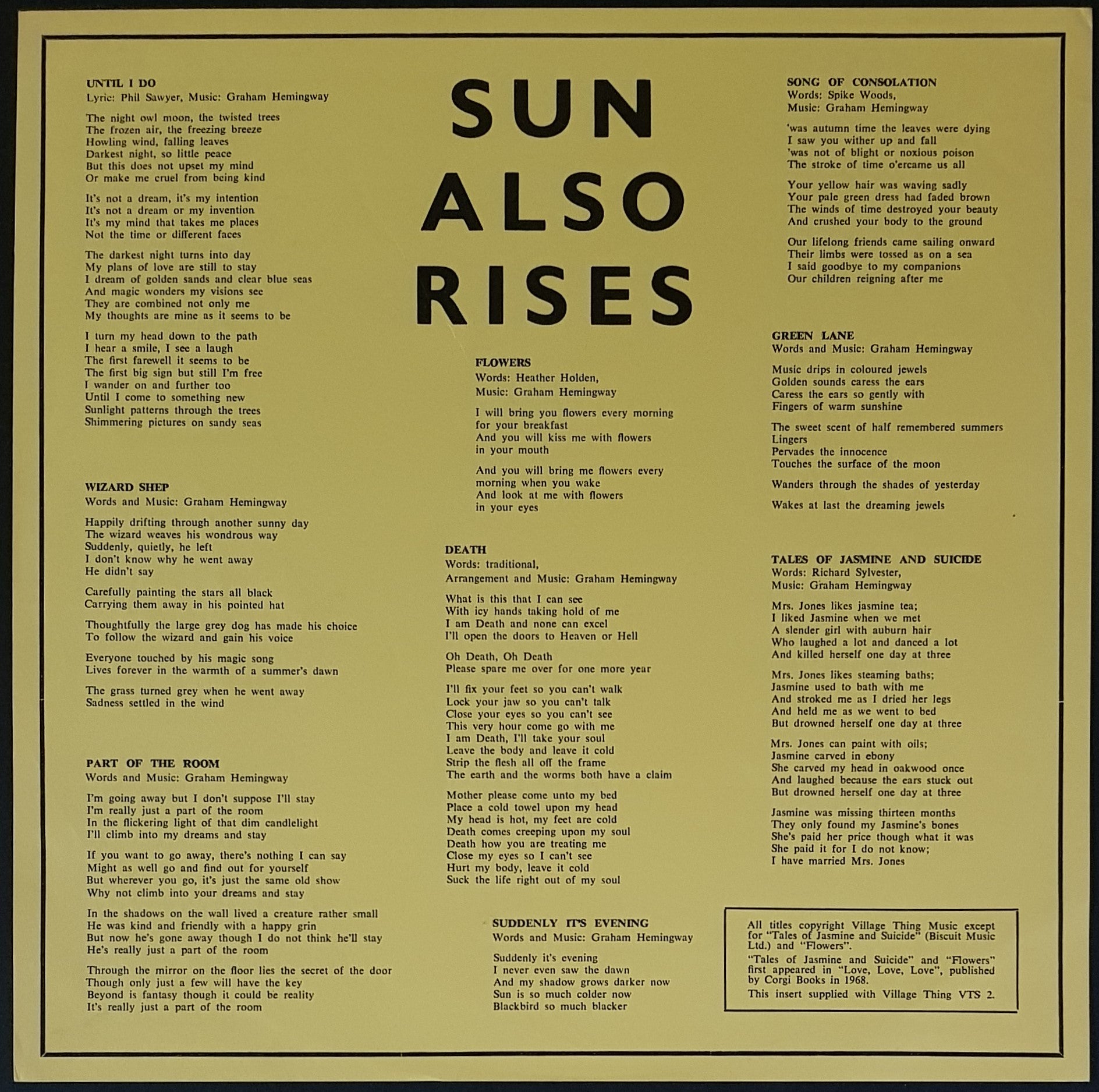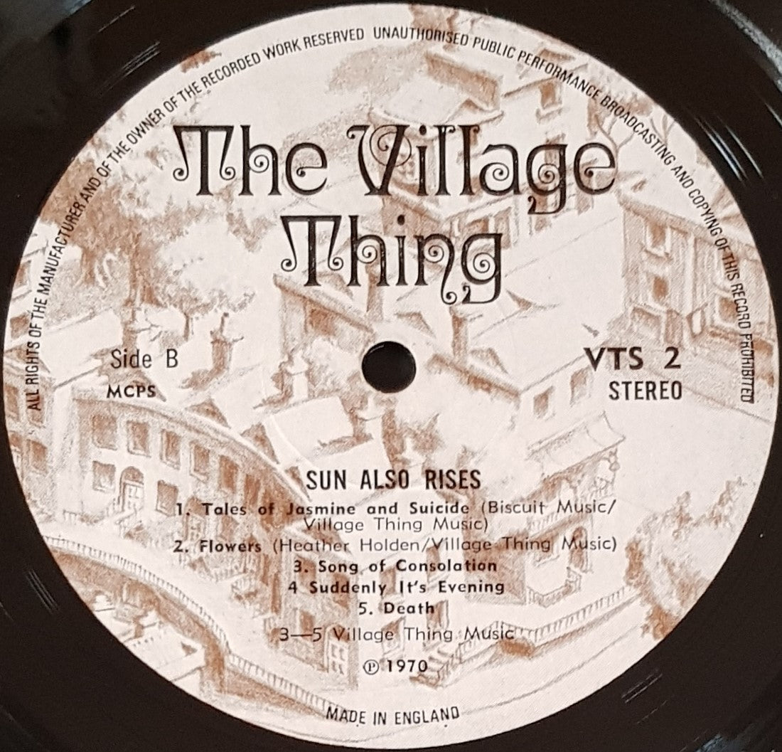 w.Insert. 1970 The Village Thing VTS 2. Cover has corner creases and heavy edge wear, Small mark on spine. Marks on "Song Of Consolation" make light ticking sound at both end of track, otherwise a very clean disc. Overall it's more VG+ than VG